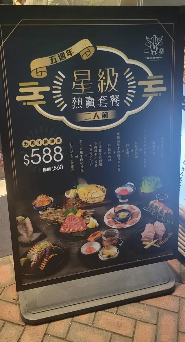 尖沙咀出名美食天堂,畢竟始終是遊客區,所以對於餐廳來說,競爭也很大!今次介紹這間位於尖沙咀,主打日韓fusion式燒肉,而餐廳不知不覺至今,原來已經開業左五年!大家不要忘記這5年,香港經過一場疫症洗禮,經濟一直下滑!餐廳在這種環境下,都能夠仍然屹立至今,實力絕對不容置疑!而最近餐廳亦舉辦「五週年慶典活動」,人均不用300元,就可以享用到高質日韓和牛燒肉!到底套餐又吸唔吸引呢?環境及服務方面:餐廳服務員全部都很有禮貌,尤其是經理,他會細心解釋每一道菜,等你容易掌握燒烤時間!而餐廳以無煙燒烤為主,大家食完都唔怕成身燒肉味!食物方面:餐廳主打日韓fusion式燒肉,而今次這個「五週年慶典活動」套餐,都是以餐廳最熱門菜式為菜單依歸!五周年星級熱賣套餐二人前 $588起套餐內容:-揚櫻花蝦豆腐 或 梅酒蕃茄-全天然西班牙豚肉五花腩 或 鳥肶肉醬油 或 野菜組合-煙燻蘋果木松露和牛他他 或 鮮活魷魚筒-美國和牛封門柳 -美國和牛牛板腱-香蔥薄切牛舌 -黑松露和牛肉碎炒飯 或 日式芝士魚籽雞卷今次我就選擇:前菜:揚櫻花蝦豆腐清爽豆腐炸物,外面煎得金黃香脆,內裏保持豆腐的嫩滑,再配上櫻花蝦,作為前菜,絕對可以打開你的胃口!煙燻蘋果木松露和牛他他將蘋果木燃燒成煙,然後打進玻璃樽內,當掀蓋的時候,香氣會隨煙霧散開,這道菜,絕對儀式感滿滿!上枱時預先將材料分開上,有蘋果絲,雞蛋,蔥花,生牛肉等,將所有食材放入一個玻璃樽入邊,然後連黑松露攪勻就食得!整道菜將蘋果木煙燻的香氣,與黑松露的濃郁風味完美融合,配合生和牛加入雞蛋一起食,和牛變得鮮嫩好滑入味!(記得趁熱食呀)美國和牛封門柳 封門柳是成隻牛,肉味最濃的一部分,因為每隻牛只得一條,所以,封門柳亦被譽為是「牛之靈魂」,而正所謂物以罕為貴,封門柳本身已經很珍貴,加上和牛,這道菜就更珍貴上加貴!美國和牛封門柳,脂肪不多但肉味濃!其肉質鬆軟,不易變韌!經燒烤過,味道更有口感!全天然西班牙豚肉五花腩外表肥美霜降較勻稱,只要微微一燒,已經相當好味,加上生菜及醬料一起食,清爽得來更惹味香蔥薄切牛舌 由於牛舌超薄切,所以醃得好入味!先將牛舌兩邊燒至金黃色,燒完之後,放在爐邊然後加上香蔥,餘溫令香蔥的味道,帶入牛舌中,食落層次感更豐富!美國和牛牛板腱這個部位是牛經常運動的位置,所以相對脂肪較少,有咬口、肉味亦很濃郁,燒烤後更有嚼勁!黑松露和牛肉碎炒飯以燒熱的石鍋盛住珍珠米炒飯,炒飯炒得粒粒分明,配上帶點油脂的和牛肉碎, 肉的油脂和米飯融合再炒香,配上黑松露!服務員會將整個飯攪勻,然後再供給大家進食!黑松露的香氣,被米飯所吸收,每一口都齒頰留香!以黑松露和牛肉碎炒飯作為今晚完美的尾聲!飲品:柑橘梳打特飲 /巨峰梳打特飲整體來說:食物質素非常之高,以這個食物質素,加上這個價錢,絕對是性價比超高!推薦推薦!(五週年星級套餐二人前原價$860,星期日至四$588起*星期五六優惠價!一切以餐廳價格為準)