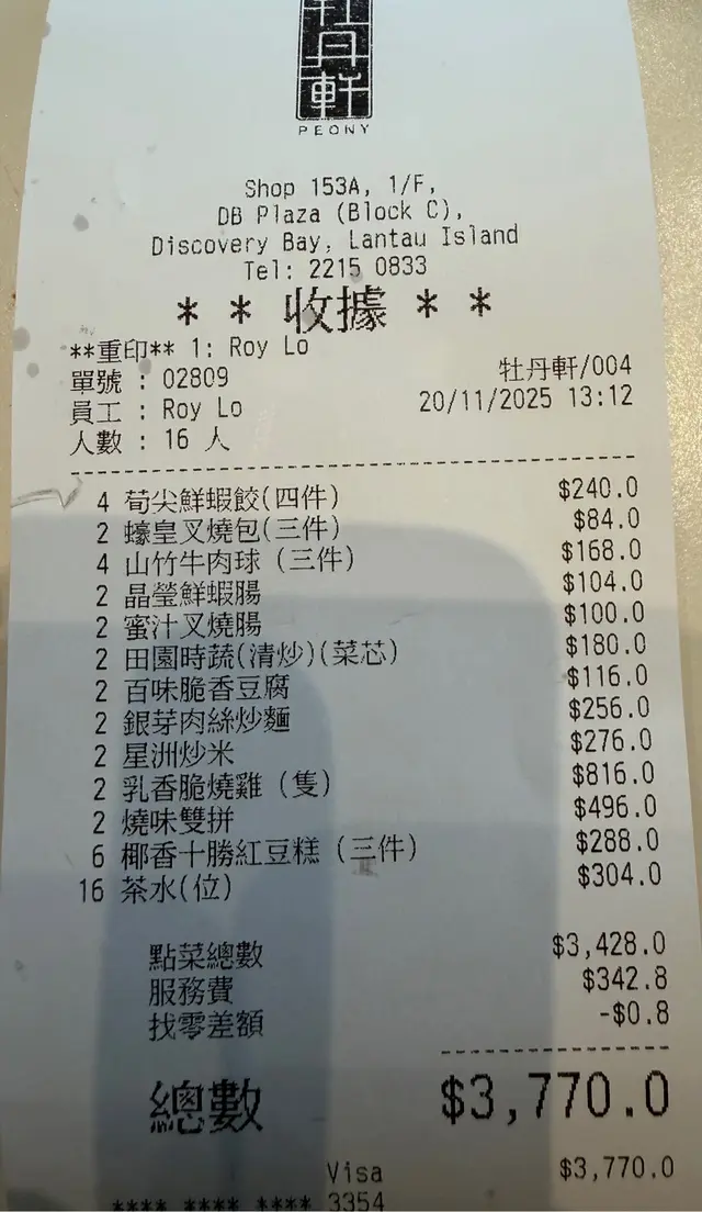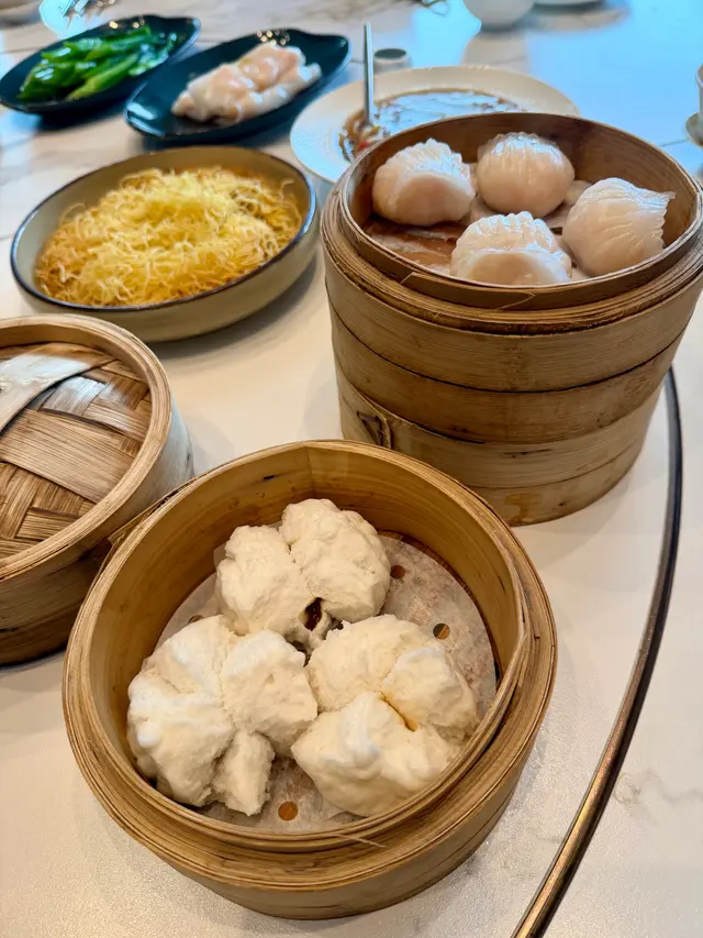 友人新居入伙,上樓前先來祭祭五臟廟。一早已標籤了牡丹軒,恰巧時機合適,便在此品嚐點心午餐。食府有一個有天窗的大廳,光線明亮但嘈吵,而我們選擇坐在小廳,人少一點,比較適合交談。點心選擇足夠,以質素論價錢也算實惠。筍尖蝦餃外型飽滿,餃皮有韌性是喜歡的口感,餡料的鮮度合格,筍尖更為蝦餃增添一點清香。本以為山渣會為叉燒飽提酸增香,而事實卻是只剩甜味,反不如平常的雪山叉燒飽。平日多選以肉或海鮮作餡料的腸粉,今日選擇來一個上素腸粉,鼎湖上素餡料十分多樣,有雜菌、紅蘿蔔等爽脆食材,也有軟滑的雪耳,口感豐富。鮑汁鳳爪燜得軟而不爛,口感軟糯,但調味有點甜,比較適合愛糖的食客。點心點得不多,因此加了蝦乾炒鴛鴦米。鴛鴦米有點肥膩,然而咸鮮味道充足,花竹蝦乾名不虛傳,肉質緊實,非常大尺碼,雖然是乾品,但也為鴛鴦米增添了不少海鮮風味。…查看更多