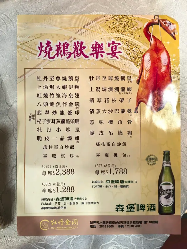 牡丹金閣 (天慈商場) (天水圍) 網址: https://s.openrice.com/QrbS03By500 地址: 香港天水圍天喜街9號天慈商場1樓110號舖 電話: +852 28189868