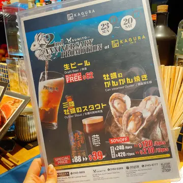走進銅鑼灣這間以藍色調裝潢的「牡蠣小屋 Kagura」,瞬間恍如置身日本居酒屋!店員全程以日文招呼客人,吧枱後擺滿各式日本酒,配合柔和燈光與木系設計,氛圍感直接拉滿。今晚試了多款招牌菜式,人均$675,體驗了一場舌尖上的東瀛之旅~🦪 六種醬汁生蠔拼盤 ($328)|味覺藝術品選用廣島名物「惠比須蠔」,特點是蠔身偏小但口感爽脆清甜,礦物味溫和,最適合搭配創意醬汁:1. 青檸酢海蘊:酸爽海藻引出蠔肉清甜2. 檸檬風乾火腿:鹹香火腿與檸檬激發層次3. 甜辣醬三文魚子:爆珠魚子與甜辣醬共舞4. 青檸魚子醬:奢華鹹鮮碰撞清新青檸5. 刁草蘿蔔蓉:草本清香襯托蠔肉本味6. 土佐酢果凍:晶瑩果凍帶出高湯韻味 每款醬汁都像為蠔肉穿上不同衣裳,最驚喜是蠔肉始終保持爽口鮮甜,完全沒被醬料掩蓋光芒!🌟 限時優惠|蒸蠔半價超抵食即日起至12月20日,蒸蠔推出震撼優惠:· 半打原價$240 → 特價$120· 一打原價$420 → 特價$210 肥美蒸蠔簡單搭配檸檬或土佐醋,更能品嘗到廣島蠔的原始鮮甜!配合買一送一的生啤或半價蠔釀黑啤,簡直是完美組合~🍺 啤酒雙重奏|驚喜度爆燈· 神泡Premium Malts:泡沫如絲綢般綿密,杯面還有拉花圖案!入口果香清新,麥香醇厚,配生蠔一流· 蠔釀黑啤(半價$39):酒精濃度7%,帶有獨特海洋鮮味,回甘帶蠔殼礦物氣息,絕對是蠔宴靈魂伴侶🥩 自家製烤和牛 ($98)|和牛版片皮鴨選用嫩肩部位,油脂適中不膩口。薄切和牛烤至粉嫩,搭配青瓜絲、大蔥絲,蘸上淡味醬汁,用牛肉包裹食用——食感宛如高級版片皮鴨!牛味濃郁卻清爽,盡顯師傅功力🍢 匠心小食|每道都有驚喜· 鰻魚芝士玉子燒 ($108):厚燒玉子內藏流心芝士與燒鰻魚,切開時牽絲誘人,蛋香與鰻魚油脂完美融合· 拖羅蔥花卷 ($128):六件巨型卷物鋪滿調味拖羅蓉,蔥花清香平衡魚油,無需蘸醬已夠味· 油炸豆腐伴白飯魚 ($78):外脆內嫩豆腐包裹滿滿白飯魚,鮮香酥脆層次豐富· 火炙和牛黑松露沙律 ($158):新鮮沙律菜爽甜多汁,黑松露香氣點到即止,和牛粒增添滿足感🍚 生蠔三文魚籽釜飯 ($228)|時間淬煉之美即點即煲等待30分鐘的誠意之作!用生米以傳統釜鍋炊煮,開蓋時香氣撲鼻——米飯吸盡蠔汁精華,鋪滿三文魚籽與肥嫩蠔肉,每一口都是海洋的饋贈🌟 體驗總結▪️ 環境:百分百日式居酒屋氛圍,藍調裝修雅緻▪️ 服務:日籍店員親切專業,會細心介紹食法▪️ 優惠:蒸蠔半價至12月20日、買一送一生啤、半價蠔釀黑啤▪️ 必試:生蠔拼盤、蒸蠔、和牛卷、釜飯(建議預留時間)離店時店員元氣的「ありがとう」讓人恍如剛從廣島漁市場歸來。這間隱藏於銅鑼灣的蠔專賣店,無論是食材處理還是氛圍營造都展現出職人精神,加上限時優惠,絕對要趁12月20日前再訪encore!…查看更多