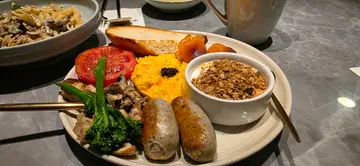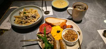 #DiningExperience 飲品: 斑斕椰汁西米奶蓋 & 意大利可可朱古力斑斕椰汁西米奶蓋很特別,椰奶的香甜與濃厚鹹香的奶蓋,是一種很奇妙的味道搭配,層次很豐富。大家可以順帶留意一下個飲管,係大米做的環保飲管,耐用而且不會影響口感。熱巧克力可可非常濃郁creamy, 熱朱古力愛好者一定必點。意粉:野菌牛肉碎意粉這個搭配看似簡單,但是卻很美味,意粉吸附海鮮菇蘑菇與牛肉的鮮香的味道,更值得一提的是,意粉的軟飲度恰到好處,完美演繹了" al dente" . 主食:薯蓉配慢燉牛臉頰肉牛臉頰肉和其配搭的紅蘿蔔燜煮得非常入味,蘿蔔很清甜。然後牛臉頰肉超級嫩滑, 搭配上奶香綿密的薯蓉 和 有洋蔥甜味的醬汁,一口下去,簡直就是味蕾的享受。伴碟的蔬菜也清脆爽口,整道菜誠意同心機滿滿。小食:烤牛柳粒這道小食也很出色,牛肉是外面烤香了,裡面是嫩滑juicy, 這麼香口的小食是會讓人停不了,而且分量也很足。餐後甜品: 兩杯 Haagen-daz 100ml 雪糕(由於晚餐的分量比較豐富,雪糕甜品只能外帶回家享用)整體而言,餐廳的出品非常高質也很美味。難怪飯點時間總要排隊,絕對會再來探店其他菜式。…Read More
