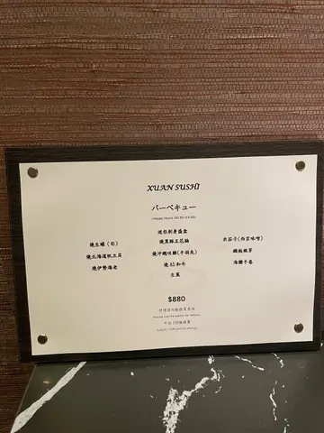 玄鮨 📍銅鑼灣開平道1號Cubus 7樓━━━━━━━━━━━━━━━━━━━━━━━━━━━━早早聽聞這間鮨店是入選米芝蓮推薦的 這次趁餐廳新推出了燒烤套餐就前來一試!每晚20:30-23:00 happy hour時段供應バーベキュー $880 +10% 整個套餐體驗感非常好~━━━━━━━━━━━━━━━━━━━━━━━━━━━━ 🍱 迷你刺身盛盒▶︎ 刺身共四款 分別為帆立貝 鰤魚 深海池魚 中拖羅▶︎ 帆立貝軟糯中帶纖維感 很新鮮~▶︎ 鰤魚和深海池魚都微微炙燒過 兩款都油脂香氣很重!▶︎ 中拖羅油花很漂亮 入口即化呢好味指數:●●●●◐━━━━━━━━━━━━━━━━━━━━━━━━━━━━🦪 燒生蠔▶︎ 燒氣仙町生蠔搭配明太子醬 ▶︎ 燒過的生蠔個頭不大 不過生熟度剛好 搭配上微帶鹹香的明太子醬很和諧!好味指數:●●●●◐━━━━━━━━━━━━━━━━━━━━━━━━━━━━🐚 燒北海道帆立貝▶︎ 燒北海道帆立貝搭配洋蔥蛋黃醬 ▶︎ 蛋黃醬鹹香濃郁 而帆立貝口感很不錯 中間半熟 而外圍裙邊非常彈牙好味指數:●●●●◯━━━━━━━━━━━━━━━━━━━━━━━━━━━━🦐 燒伊勢海老▶︎ 燒龍蝦搭配蒜蓉醬 表面略微炙燒過~ ▶︎ 龍蝦肉質Q彈 能感受到龍蝦本身的鮮香▶︎ 蒜蓉醬中還保留一點微辣 搭配龍蝦給予了一種辛香感好味指數:●●●●◯━━━━━━━━━━━━━━━━━━━━━━━━━━━━🐔 燒沖繩咲雞手羽先▶︎ 一人兩個已片開的雞翼 個頭還蠻大的~▶︎ 雞翼皮微脆而多汁 鹽燒更激發香味好味指數:●●●●◯━━━━━━━━━━━━━━━━━━━━━━━━━━━━🐷 燒黑豚五花腩▶︎ 北九州的黑豚五花腩 油香豐富而不會過於油膩!▶︎ 這款豬肉甚至比許多牛肉還要軟淋 在搭配上微有嚼口的筋和皮 雖不愛豬肉但也覺得不錯~好味指數:●●●●◐━━━━━━━━━━━━━━━━━━━━━━━━━━━━🐮 燒A5和牛▶︎ A5和牛厚切 搭配上黑胡椒燒製而成 ▶︎ 牛肉入口爆汁 先是黑胡椒的刺激感 咀嚼之下能亦能感受到牛味和肉的纖維感好味指數:●●●●◯━━━━━━━━━━━━━━━━━━━━━━━━━━━━🍆 西京味噌米茄 ▶︎ 來自高知縣的米茄子 表面加上味噌醬▶︎ 味噌調味是帶些甜味的! 搭配上多汁的茄子 個人很喜歡~好味指數:●●●●◐━━━━━━━━━━━━━━━━━━━━━━━━━━━━🌱 鐵板銀芽▶︎ 銀芽用上黑胡椒調味 爽脆而味道偏濃郁!好味指數:●●●◐◯━━━━━━━━━━━━━━━━━━━━━━━━━━━━🍙 海膽手卷▶︎ 根室馬糞海膽手卷 搭配上些許金箔點綴~▶︎ 海膽品質不錯 冰冰涼涼的手卷做結 倒是很解膩呢!好味指數:●●●●◐━━━━━━━━━━━━━━━━━━━━━━━━━━━━🍈 生果▶︎ 北海道赤肉蜜瓜甜度頗高 果肉很多汁!好味指數:●●●●◐━━━━━━━━━━━━━━━━━━━━━━━━━━━━…查看更多