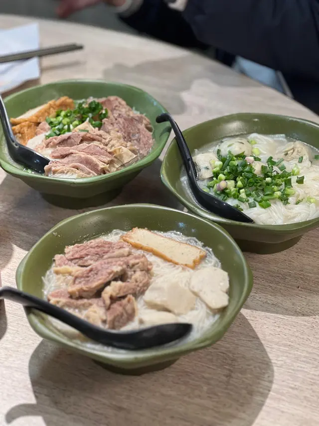王林記潮州魚蛋粉麵,屹立於筲箕灣多年,由山邊檔口做到依家有2間分店,睇返老闆娘十多年前嘅專訪,先知道原來王林記又係一個香港獅子山精神嘅故事,係一個為左養大仔女堅持每日手打魚蛋嘅暖心媽媽。前排又經歷完500年一遇嘅黑雨,適逢大潭水霸排洪,路過筲箕灣搵食,決定試吓筲箕灣東大街嘅地區名物。我哋叫咗魚蛋河、牛腩撈粗、牛腩幼麵 同 炸魚皮。………………………………………………魚蛋河加腩汁⭐️⭐️⭐️⭐️⭐️魚蛋分別包含白魚蛋同炸魚片,兩種都彈牙有魚味,仲有少少陳皮味。河粉係比較幼個種,好滑,軟硬程度適中。湯係魚湯底,有魚嘅鮮味,偏濃味。牛腩幼麵 ⭐️⭐️⭐️⭐️牛腩係清湯腩,唔算好林,幼麵爽滑彈牙。牛腩撈粗 ⭐️⭐️⭐️⭐️牛腩可以揀清湯腩或者炆腩,半筋半腩,幾入味但係腩位唔算炆得好林,撈粗麵個汁同麵都好味。炸魚皮 ⭐️⭐️⭐️⭐️⭐️王林記會特別提供一碗湯俾你浸炸魚皮嚟食,炸魚皮好香脆,好好味。………………………………………………王林記仲提供自家製嘅辣椒油,分咗大辣同埋細辣。另外,仲可以加炸蒜 同 冬菜,依家有提供冬菜嘅粉麵舖已經買少見少啦。不過,王林記味道係偏濃味,我都偏好食濃味食物,所以我覺得好好味。查看更多