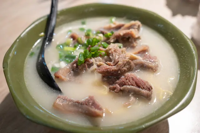 《東大街半世紀潮味!雙絕麵食魂》穿過煙火蒸騰的東大街,王林記那口熬了四十年的老湯鍋正咕嘟作響。 「崩沙腩豉油撈麵」 是罕見的隱藏彩蛋——牛橫膈膜肉被醬油浸透肌理,筋膜如琥珀凝脂,咬下時脆韌交響,濃醇豉香裹著牛脂在舌尖化開!竹昇麵條掛汁不黏牙,墊底的蘿蔔吸足腩汁,清甜解膩,一碟吃盡潮州滷水的靈魂。更驚豔是 「蔥花魚蛋麵」 ,坊間少見的古法手作魂。魚蛋並非機器丸子的呆板彈牙,而是帶鯪魚肉纖維的活潑嚼勁,蔥花爆香後嵌進魚漿裡,鮮甜直衝天靈蓋!湯底以大地魚、豬骨慢煨,清亮卻飽含深度,嗦一口幼滑河粉,再喝勺湯,海陸鮮味在喉頭共舞。查看更多