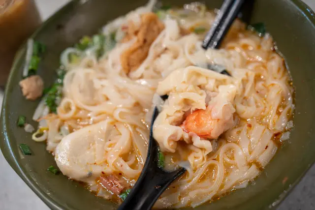 東大街美食多多✨呢間出名潮州魚蛋粉麵,嚟到呢度必試撈麵或魚蛋粉,推薦坑腩撈粗💯坑腩炆得夠淋入味,肉質唔會乾柴,粗麵麵質彈牙,豉油醬汁調得剛剛好,有啲芽菜墊底,配搭熱湯同埋特製製辣椒油,食落幾滋味😋查看更多