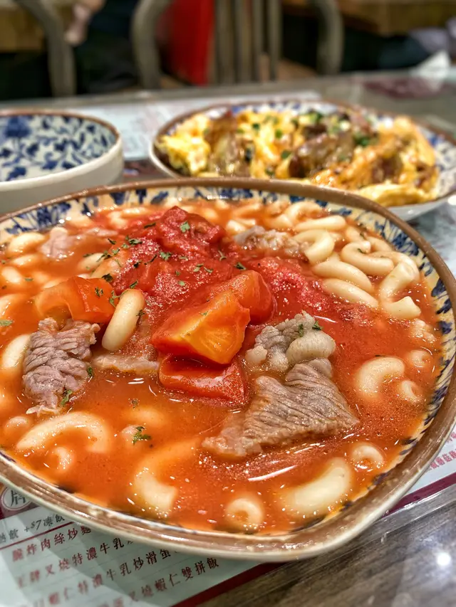 想食常餐同丹麥多士一個禮拜了😂今日見到呢間有呢兩樣想食既野 就食咗呢間!🤪🤪▪️蝦仁拼叉燒滑蛋飯比我想像中好食:0特別是配料方面!叉燒多塊又入味😳🤤蝦仁不太像蝦仁,更像蝦🦐!不會過份彈口、像冰凍蝦仁,而且又有蝦味又飽滿😳😳😳 滑蛋方面也是不會老,甜豉油也不會太多!😋😋😋只是有點過油😂不過整體幾好味~▪️番茄鮮牛肉通粉·常餐 $48配嫩滑蛋、丹麥多士番茄湯底好濃郁,除咗茄蓉仲有番茄本人🍅🧐🥸通粉好好好多,牛肉都好多!😚但牛肉好韌 難咬開😕丹麥多士烤得太酥脆😂冇丹麥多士嗰種手撕麵包的口感🙁 蛋都好嫩、煮得比較水~查看更多