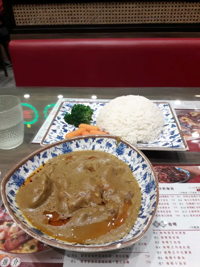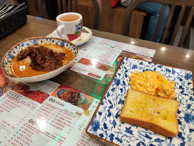 行過俾個招牌吸引住, "特濃沙嗲牛". 咁就叫咗個沙嗲牛餐 $38。但令人失望, 只有少少沙嗲味, 濃的是顏色同味道. 蒜茸多士要加 $2 ,  都係冇咩特別. 著住便服的伙記招呼有點奇怪,   坐低咗先話張枱滴水, 又起番身轉去第二張枱。點解又唔封咗個位呢?總括來講 冇咩特別. 查看更多