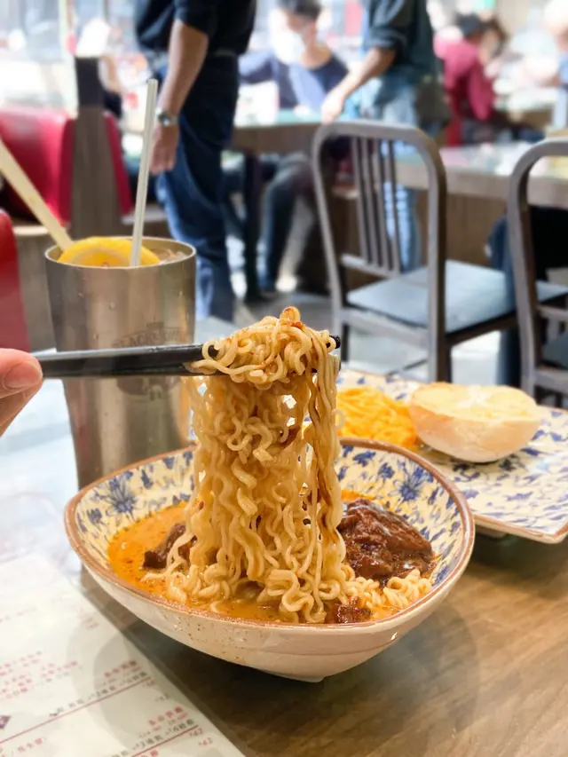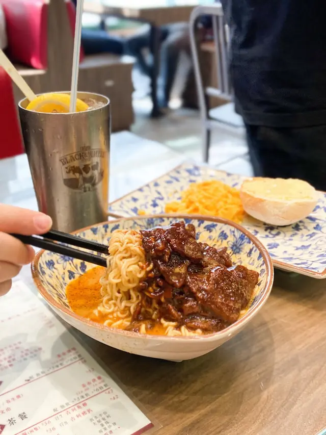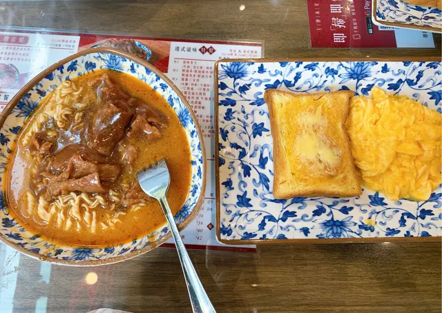 之前睇到關注組都有介紹佢既沙嗲牛麵,所以都幾對佢幾大期望!食左佢既經典常餐,王牌特濃沙嗲牛肉公仔麵,配牛乳炒蛋同多士。佢既沙嗲牛果然冇令我失望,牛肉好林身,而且個汁十分濃,食落有少少花生醬味,係偏甜既沙嗲汁。佢汁濃到係每條麵都可以做到掛湯!食到最後可能會有小小覺得太濃味,不過整得感覺都好好!係值得回味既沙嗲牛!而佢既牛乳炒蛋都十分滑,一啲都唔會蘇,不過就冇太大既驚喜🙈整體嚟講,覺得佢價錢合理,而且個沙嗲牛都真係做得幾出色,一定會再食🤤查看更多
