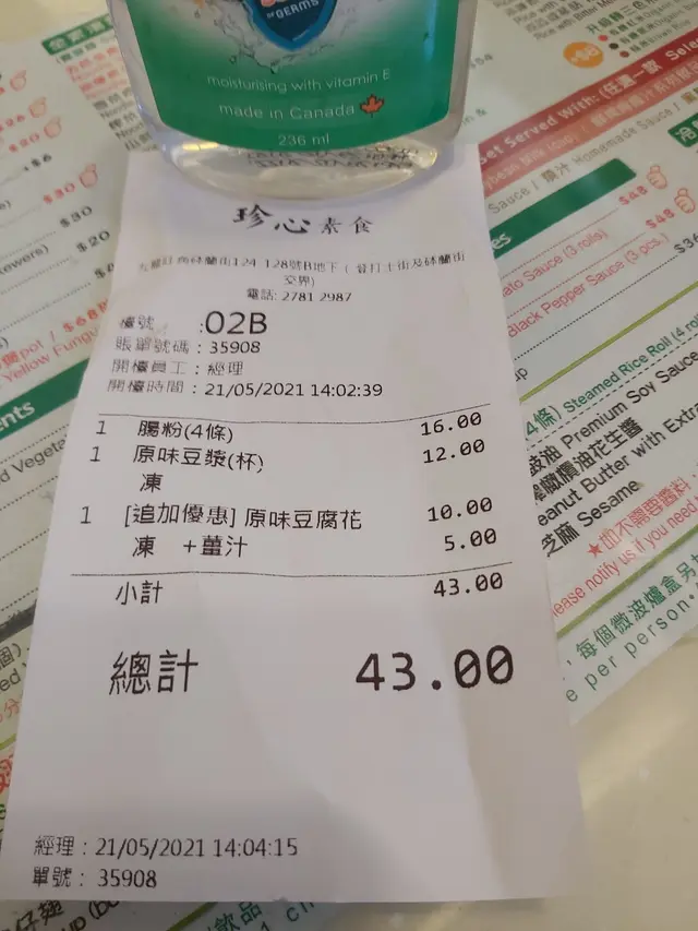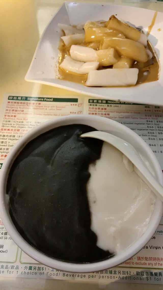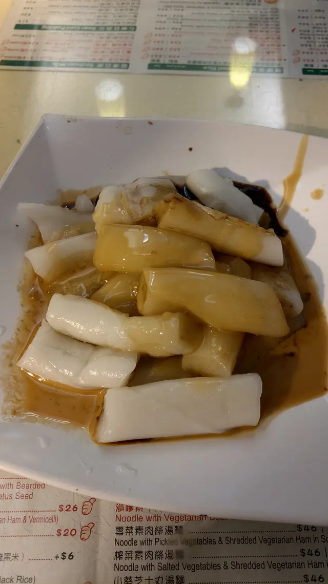 早前,知己好友請我到旺角食晚飯!我卻不太肚餓,我們由旺角朗豪坊沿砵蘭街行,如果食火鍋又會好飽,見到有間素食店 <珍心素食豆漿豆腐花專門店>! 素食也是不錯的選擇!供應:輕食、素湯麵、素飯、腸粉、炒麵、炒菜、豆腐花...!頭抽腸粉 $16/ 4條除了香滑的初榨橄欖油花生醬之外,特別加入頭抽豉油,零舍鮮美突出!醬汁絕對是腸粉的靈魂!  熱辣辣的腸粉口感軟滑!真心抵食又推介的頭抽腸粉!熱芝麻豆腐花 $25芝麻糊幾濃郁,卻是整體甜味稍遜略為淡口!豆腐花軟身滑溜!查看更多