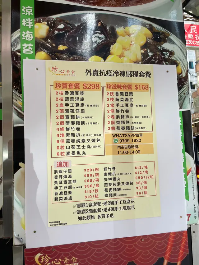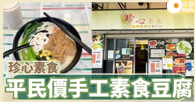 好耐之前在灣仔吃過一次 珍心素食 已經留下深刻印象,事隔多年都無乜機會再食,今日經過旺角搵地方食午餐,忽然醒起又行入去食下。平民價錢選擇多元化,仲要真係好好食,食完好想搵日再去食腸粉豆花碗仔翅。素食餐廳在旺角砵蘭街,在油麻地和旺角地鐵站中間,我自己就成日會行過果頭,所以都幾方便易搵。入面裝修簡簡單單,就係一般香港茶餐廳小店的Style。除了一般餐牌之外,店內牆上仲貼左好多唔同菜式,周圍望下又見到有新野食,感覺幾有趣。疫情期間推出多款外賣飯餐,非常抵食。個餐牌真係好多元化,除了飯和湯麵之外,仲有各種點心小食,花多眼亂樣樣都好想食。食完正餐仲有豆腐花和其他中式甜品,真係好需要再來食多幾次。沙嗲素牛湯湯麵 + 豆漿 HK$54麵底可以揀蕎麥麵或烏冬,或者加錢升級轉南瓜糙米米粉。原先以為會係沙嗲湯底,點知係類似豆乳濃湯勁好飲!沙嗲牛肉個醬好重花生醬味,熱愛吃花生醬的寶寶表示高興!食落仲唔會好油膩,碗麵仲有菜、海帶、紅蘿蔔絲和玉米粒,有齊唔同顏色又夠豐富。好耐都食過咁好食的素湯麵喎,真材實料又有用心機煮的感覺,以後要多點再來吃。查看更多