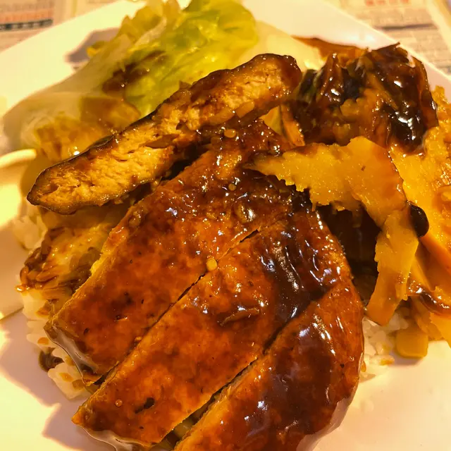 想食素既一個晚上,去到旺角呢間已經好多年既小店。提一提呢度嘅腸粉係超好食的!不過今次就唔係黎食腸粉,叫左雙拼飯餐。南瓜、豬扒飯超好食嘅南瓜!!!係可以不停食嘅節奏!南瓜甜又香!好少食南瓜既我竟然覺得唔夠喉!豬扒都幾好,雖然同真既分別有些少唔同,但係都幾好味的!雪耳薏米水嘩!!好飲呀!!仲好足料,潤返晒!下次黎要試飲下佢個胚芽系列!整體評價:👍🏼👍🏼👍🏼👍🏼👍🏼查看更多