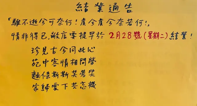 四年無幫襯一不離二執多劑,最後朝聖的機會,珍苑明天228榮休了﹗最後一次幫襯要食好多好多先得。老闆無明示什麼原因,只回應不是移民,不知道會否再開,可能因為加租壓力吧﹗久違了的真軟啊,有段長時間無探訪,發現加入不少新菜色而且仲有飯餐提供添。本諗住安安樂樂醫醫肚,再次被阿伯搭枱,仲要有三個阿伯大包圍唔那帶口罩不停噴口水,無奈地唯有極速倒碗麵落肚,不到三分鐘消滅即閃速逃﹗可口可樂,沒有了最好味的玻璃樽裝,換來高瘦鋁瓶,怪怪的甜味,傳統罐裝較正常。黑芝麻鮮豆漿,是外購樽裝貨不是自家製有點失望。自家滷全翼,暖笠笠甜彈滑結實,熱熱不霉,黏膠雞皮跟燒味店有所不同。蝦子撈麵,炒得甘香無比的蝦子顆粒鋪滿幼麵上,密密麻麻未入口已聞得到芬芳撲面﹗落少許高湯較易跟幼麵撈得均勻,每條麵都要沾滿蝦子才肯罷休!準備就緒連辣椒油都放棄不加,我先要食其真身原汁原味。狠狠地大啖大啖吸啜,蝦子味濃厚鮮甜,幼麵略凍了一點點,不過爽到索索聲讚不絕口。蛋香蝦香湯甜無異味,食得我興高采烈,長啜長有一氣呵成!水餃蝦子撈麵,阿嬸稱強制性只可以雲吞或水餃跟蝦子撈,那麼奇怪的政策?可否解釋一下?其他麵檔牛腩、牛雜、豬雜、任何丸都可以,只不過係另上再跟碟蝦子撈麵。大量甘香蝦子鋪得滿滿搭上纖幼脆麵配合得天衣無縫,咸香使人一再回味,加上辣椒油如虎添翼,欲罷不能﹗我的味蕾懷孕了。大地魚清湯,濃厚大地魚清甜味,係大海的味道啊﹗腐乳通菜,幼幼旱通不喜歡,不夠爽甜、不夠翠嫩,還有點點澀味。幸好熱烘烘仲有惹味腐乳醬,咸鮮帶輕輕辛辣,挽回少許分數。蠔油菜芯,菜芯超級爽甜翠嫩多多汁。牛肚牛腩撈伊麵,重重份量啜啜啜好滿足﹗最敝腩汁太少不夠搞使得淡茂茂,而且伊麵太濕烚過龍,麵香蛋香欠奉。白雪雪淡茂茂伊麵要掛上大量香辣辣椒油才能挽回一丁點分數,提味醒神和味舒暢。崩了的瓦碟就不要給食客用吧,崩口人忌崩口碗啊。炸醬撈伊麵,味道似乎跟伊麵格格不入,我錯了﹗炸醬只可以配幼麵,就算粗麵都不合味道。甜甜伊麵味道十分奇怪,都係配爽彈生麵較合適。加兩大羹辣椒油都於事無補,唯有急急消滅掉算了吧﹗伊麵嚥韌完整啜得長長久久十分舒服,我真係好鍾意食伊麵﹗忘記了撈伊麵係用大餅伊麵,免強全部清晒飽到上心口,頂住個胃啊﹗墨魚丸蠔油炆冬菇撈粗麵加腩汁,想起兒時係酒樓很喜歡食的北菇撈麵,真的使人懷念﹗巨丸圓轆轆白雪雪真材實料,彈彈充滿墨魚香,還間中咬到墨魚肉碎,不粉不黏清爽美麗﹗感激沒有剪斷我的長壽麵,可以一氣呵成長啜長有,感覺良好狂野暢快﹗耐心地將蠔油冬菇、兩大羹辣椒渣及腩汁撈得均勻,每條粗麵都要沾上亮麗光澤與色彩﹗彈牙滑滑的質地更添食慾,香辣味濃的助料回味無窮,此味只應天上有。咖哩牛腩撈伊麵終於給我最愛不散碎的長長伊麵,可以長啜長有一氣呵成無間斷。嚥嚥韌韌無過濕無過腍而保持麵粉香甜,再撈辛辣咖哩汁如虎添翼﹗伊麵掛滿咖哩狠狠地吸,汁跟麵同時間消滅殆盡非常高興,捲著鬆化牛腩同噬更加有趣滋味。淨冬菇魚蛋起角方方大大粒的傳統潮州板魚蛋極具彈性及拉力,咸鮮突出味道奇濃。冬菇厚肉菇味非凡,咬落汁甜美滑嘟嘟,蠔汁清新提鮮。雲吞水餃河粉,大大粒雲吞十分有睇頭,蝦爽肉甜皮滑,不過咸不太鬆散。水餃除蝦及肉外,還加入爽口木耳,包得結實格外美味。牛丸牛腩粗麵,已經好少見有界花的牛丸,雖然快熱快熟,但肉汁多多少少會流失一點,嚥嚥韌韌不覺爽彈不覺多汁,牛味是香濃的。纖幼的粗麵彎彎曲曲特別掛湯,有咬口而彈中帶滑,麵粉香及蛋味突出,難得高質。牛筋伊麵,結實黏膠的牛筋非常入味,清甜的柱侯汁,我喜歡綿腍質地的呢。終於食到一次完完整整長長滑滑伊麵﹗真係老懷安慰。嚥嚥韌韌掛滿辣椒油拖著濃郁湯汁,啜得開心愉快一氣呵成,唔洗食到疾住疾住。貢丸蠔汁炆冬菇麵,圓轆轆大大粒貢丸,真材實料菇味香濃飄逸,爽彈的質地趙得過癮﹗而且豬肉甜味出眾非凡,實在味力沒法擋﹗特級爽彈的生麵,爽到索索聲,幼幼帶湯力強,啜得格外暢快﹗胡椒豬肚丸牛腩撈粗麵,都話唔好剪斷我既長壽麵咯,係要咁聞塞架呢﹗短戚戚的粗麵啜到疾住疾住成肚氣,本來兩啖一氣呵成吸啜完成,依家分十啖續少續少夾黎食非常疲累﹗雖然食住香滑彈牙粗麵還是開心的。彈牙爽爽滴汁豬肚丸,出眾的胡椒味辛辣中散發香甜,滋味無限﹗牛筋腩河粉,牛腩軟塾鬆化而味道較早年略淡,牛筋膠黏帶彈都係偏淡。結實爽滑河粉有點碎,用羹連湯啜吧﹗湯頭味道滿意,配河粉加點胡椒粉加點辣椒油更精彩。淨河粉,高湯濃郁,直接拿起碗連湯汁帶滑滑河粉灌入嘴仔,豪氣地一啖過消滅,狂野滿足﹗淨豬手,每舊都係主要筋皮沒丁點肉,爽而不軟綿的豬皮加脆脆的豬筋,溫和的滷水味道,平凡無意見。…查看更多