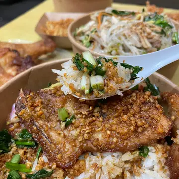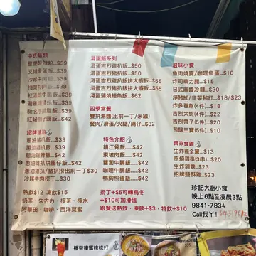 真平民抵食小店🔥!之前去過佐敦分店,早幾日趁天氣涼啲同朋友去石硤尾總店宵夜,幾有大排檔feel小店做學生哥同街坊生意外賣為主,亦有唔少區外人慕名而嚟食宵夜圖9-10餐牌全日同價,夜晚大多數飯類都係$39-$42,包埋熱飲凍飲加$3多飯多餸大大碗,男仔都一定夠飽肚,大食人士想添飯都係免費,名符其實嘅平民飯堂🤪!除咗主打大碗飯同各款香炸小食,仲有多款麻辣涼拌小食、暖笠笠湯飯等鎮店招牌四寶(避風塘、蔥油、椒鹽、辣椒醬) 全部都係自家製🌟-👍🏻避風塘豬扒飯(包嘢飲) $39鋪滿大量自家炒製避風塘脆脆,加上招牌蔥油、秘製辣粉、椒鹽鹹鹹辣辣,香濃蒜香味,超級惹味,忍唔住撈飯食晒啲炸蒜🤣豬扒連骨但碎上方便食,沾滿避風塘香口入味,不過瘦咗啲同炸得比較乾- 👍🏻蔥油雞扒飯(包嘢飲) $39私心好鍾意食呢度啲蔥油,蔥粒爽脆,蔥香味濃,唔會有蔥嘅草青味或辛辣感亦唔會太鹹太油膩,加上少少甜豉油撈飯一流,真係招牌🤤雞扒味道正常,肉質就唔算好滑,勝在大塊厚肉皮脆-👍🏻沙嗲牛肉飯(包嘢飲) $39石硤尾總店先有,牛肉份量多,沙嗲醬濃稠有花生味,但味道鹹咗啲個人覺得撈丁應該仲夾,仲要平啲$30咋-👍🏻馳名手撕雞飯(包嘢飲) $39手撕雞肉質正常,麻辣比較溫和,本身已有少少椒鹽底味幾入味,混咗芽菜、紅蘿蔔絲同招牌蔥油,整體唔會太油膩,撈飯一流-👍🏻生炸雞髀 $23招牌之一!即叫即炸,落單後大概等10分鐘,大大隻非常脆口,皮脆肉嫩,一咬開超多肉汁湧出🤤雞髀本身醃得入味又唔會有雪味,推薦要嗌辣,秘製辣粉麻麻辣辣惹味好多-👍🏻避風塘魷魚鬚 $28 & 金蒜豆腐 $20魷魚鬚魷魚味好香,金黃酥脆夠晒香口唔算好厚肉,但份量好多,呢個價抵食金蒜豆腐同樣有大量避風塘,味道就正常發揮,主要食避風塘脆脆😈-小店由老闆娘珍姐一腳踢,珍姐非常熱情好nice,好似媽媽咁驚我地食唔飽,又驚我地坐外面吹風凍親,好有人情味好有心😌整體走平價路線,環境就唔好期望太多,堂食係門口打開摺枱味道唔算好驚艷但唔差,食物勝在大件夾抵食,CP值高-味道:7/10性價比:9/10-📍#珍記大廚小食 @zankeefood石硤尾偉智里1-3號白田購物中心地下84號舖佐敦南京街6-6C號地下A2號舖…Read More