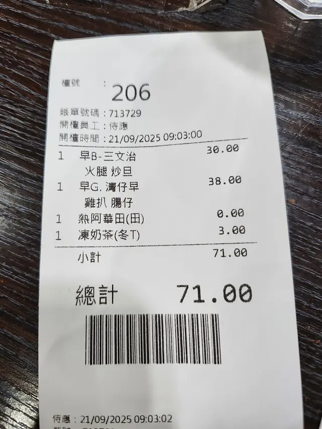這間茶餐廳,談不上驚艷,卻是我們一家四口的日常飯堂。女兒趕補習前,常來點一份早餐,腿蛋治•熱華田,三十蚊,五分鐘上桌,熱氣騰騰。我最愛他們的熱奶茶,茶膽濃澀而不澀喉,倒入淡奶的瞬間漾出琥珀色漩渦。這裏的餐牌二十年如一日,凍飲加三蚊。膠餐牌反而比那些電子餐牌更有溫度。或許茶餐廳從來不只是吃飯的地方。那個總記得我走甜的阿姐,當連鎖餐廳越開越多,這種街坊味道顯得愈發珍貴。我們在這裏吃的不只是食物,更是歲月醞釀的安心與熟悉。…查看更多