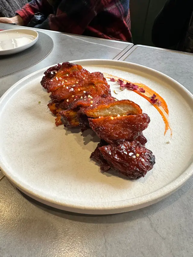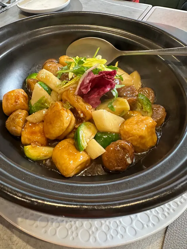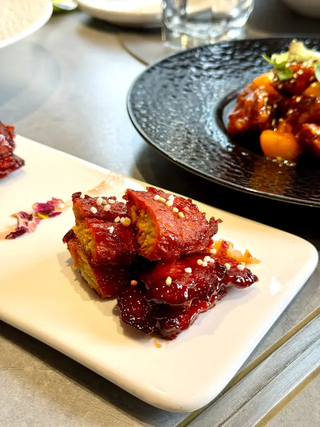 【【中環「珺」素食餐廳 - 創意齋菜新體驗】隱藏在中環小巷的「珺」素食餐廳,裝潢簡約雅致,木系桌椅搭配柔和燈光,營造出舒適的用餐氛圍。這裡的創意素食令人驚喜,人均消費約180元,相當合理。招牌玫瑰叉燒以大豆蛋白製作,卻能重現傳統叉燒的蜜汁香氣,口感細膩入味。桂花柚子猴頭菇外酥內嫩,酸甜醬汁中透著淡淡桂花香,確實有咕嚕肉的神韻。避風塘茶樹菇香氣撲鼻,炸蒜與辣椒的辛香讓茶樹菇吃來格外開胃。整體而言,這裡的素食料理不僅創意十足,味道也在水準之上,份量適中。特別適合想嘗試新派素食的朋友,或是尋找安靜用餐環境的上班族。午市時段前來,更能享受超值套餐。中環「珺」素食餐廳 - 創意齋菜新體驗】隱藏在中環小巷的「珺」素食餐廳,裝潢簡約雅致,木系桌椅搭配柔和燈光,營造出舒適的用餐氛圍。這裡的創意素食令人驚喜,人均消費約180元,相當合理。招牌玫瑰叉燒以大豆蛋白製作,卻能重現傳統叉燒的蜜汁香氣,口感細膩入味。桂花柚子猴頭菇外酥內嫩,酸甜醬汁中透著淡淡桂花香,確實有咕嚕肉的神韻。避風塘茶樹菇香氣撲鼻,炸蒜與辣椒的辛香讓茶樹菇吃來格外開胃。整體而言,這裡的素食料理不僅創意十足,味道也在水準之上,份量適中。特別適合想嘗試新派素食的朋友,或是尋找安靜用餐環境的上班族。午市時段前來,更能享受超值套餐。…查看更多