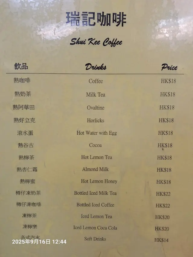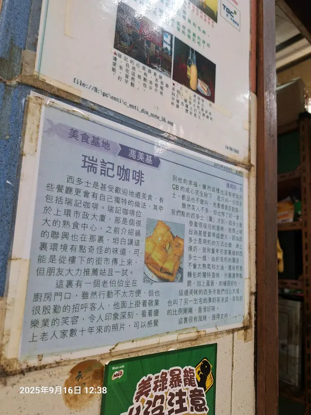 瑞記咖啡 (上環) 網址: https://s.openrice.com/QrbS0ywC000 地址: 香港上環皇后大道中345號上環市政大廈2樓熟食中心17號舖 電話: +852 28508643
