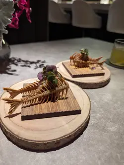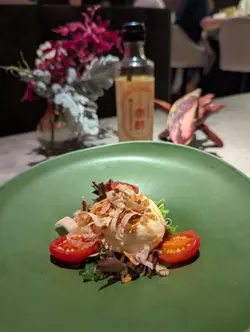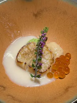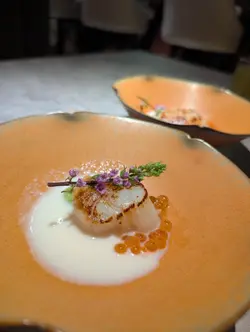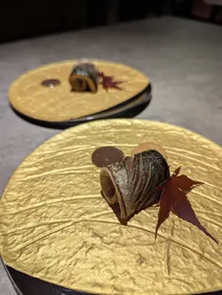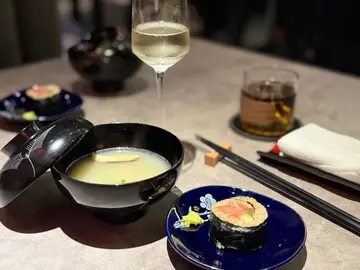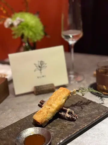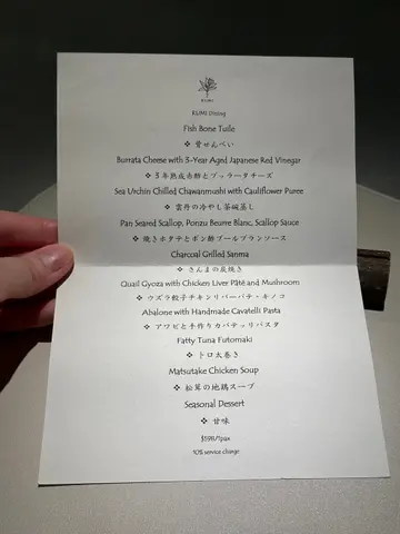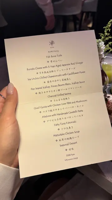瑠美 RUMI最近北角新開日本餐廳, 主打日法fusion Omakase, 無論係幽雅環境、精緻的餐具, 仲有最重要美味又有創意的料理, 每個細節都一絲不苟, 好有驚喜. $598位性價比超高. 只開晚市, 如果有興趣一定要book 位. 因確保食材新鮮所以只會按預約人數準備骨せんべいと中トロタルタル Fish Bone Tuile with Chu Toro Tartare 第一道由鯖魚絞肉重新用模焗成魚骨型脆餅, 兩塊夾住拖羅他他混左意大利青瓜, 外脆內滑, 醬汁帶微酸. 3年熟成赤酢とブッラータチーズ Burrata Cheese with 3-Year Aged Japanese Red Vinegar 第二道軟滑水牛芝士加入鰹魚碎、櫻花蝦, 畫龍點睛係百合茄以熟成赤醋醃過, 其酸甜度更深更豐層次, 令成個salad 由和風鹹拉番去酸甜開胃雲丹の冷やし茶碗蒸し Sea Urchin Chilled Chawanmushi with Cauliflower Puree 第三道, 係我其中一道最愛. 顛覆茶碗蒸認知, 直接用左海膽殼做凍食海膽茶碗蒸. 下層係甜美柔滑北海道馬冀海膽蒸蛋中間creamy 椰菜花慕絲, 上層放上北海道產雲丹. 整體無論係絲滑口感定鮮甜都令人難忘焼きホタテとポン酢ブールブランソース Pan Seared Scallop. Ponzu Beurre Blanc. Scallop Sauce第四道係香煎帆立貝拌牛油果蓉, 店員介紹完會即席倒入魚湯. 帆立貝煎至金黃內嫩滑, 上面三文魚籽用柚子汁浸漬過, 味道幾輕柔, 可再灑上紫蘇花增添幽雅香味. さんまの炭焼き Charcoal Grilled Sanma 第五道炭燒日本秋刀魚, 依家時令所以非常肥美, 備長炭灸燒至魚皮微脆. 配左濃郁甘甜味秋刀魚肝醬令整個鮮味昇華, 仲有意式蕃茜醬. ハト餃子チキンリバーパテ・キノコPigeon Gyoza with Chicken Liver Pâté and Mushroom 第六道燒鵝肝白菌鵪鶉髀餃子. 外層香脆, 中間釀入整隻鵪鶉髀肉伴雞肝野菌醬, 鵪鶉肉嫩多汁而鵝肝濃香綿滑, 再加上白菌香氣同淡淡杉樹葉香, 重新以法式精緻演譯“餃子”アワビと手作りカバテッリバスタAbalone with Handmade Cavatelli Pasta 第七道嘅鮑魚手工扭指粉, 手工製口感好好, 煙韌有口感. 每粒粉中間坑洞好掛汁. 個sauce 用左鮑魚肝醬煮好鮮. 鮑魚軟彈仲有爽口筍粒トロ太巻きFatty Tuna Futomaki第八道拖羅太卷用左口感較硬甜度較低嘅意大利米突顯吞拿魚鮮甜松茸の地鶏スープMatsutake Chicken Soup 第九道清澈鮮松茸雞湯, 清淡加入新鮮香烤松茸片甘味Seasonal Dessert甜品, 第十道最後的, 亦係我好喜愛. 手工製幼滑雪糕帶濃郁, rosemary 同butter cream 香, 配原粒香脆焦糖榛子、清甜蜜柑肉同蜜柑caramel sauce, 放係可愛蜜柑造型小碗. 無論外形味道定口感都滿分. 仲好體貼換走冷綠茶配上熱焙茶 非常圓滿的結尾聽師傅講已經度好黎緊新menu, 將會加重法式元素. 第一次咁期待會有咩創新法日料理, 心裏已經開始默默盤算住黎緊有咩節日慶祝可以俾自己食到新menu. 之後價錢唔知會唔會調整, 如果想試記得抓緊時間bookmark 預約啦…查看更多