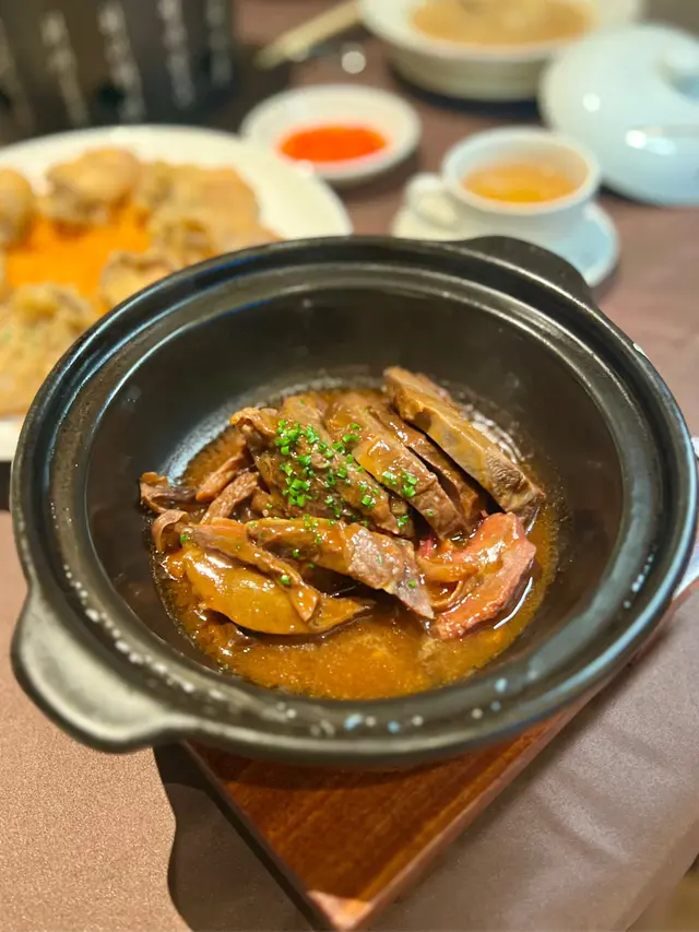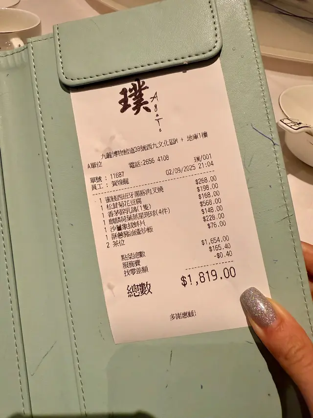 同男朋友喺西九文化區漫步後,嚟到呢間隱藏於文化園內嘅高級粵菜「璞」。全場樓底空間感足,仲有唔少人嚟包場辦宴會,氣氛優雅浪漫。今次試咗多款精緻菜式,人均$879,每道都係視覺與味覺嘅雙重享受!🌟 環境與服務· 宴會級場地配落地玻璃,望到西九夜景· 職員專業有禮,會詳細介紹每道菜· 茶位用蠟燭保溫,優雅得嚟保持茶溫🍖 礦物質叉燒 ($268)|視覺系主打用西班牙黑豚肉製成,部位偏瘦但唔韌。上桌時用迷你炭爐保溫,炭香隨白煙飄散!最特別係配紫蘇葉包住食,清新香氣中和叉燒嘅蜜糖甜,創新得嚟又解膩~🍄 松茸菊花豆腐 ($198)|功夫之最將嫩豆腐切成盛放菊花形,每條幼度均勻!湯底清澈見底卻暗藏玄機——松茸香氣完全融入湯中,飲落鮮甜回甘,豆腐入口即化,簡單中見功力!🥣 花膠酸辣湯 ($236)|溫柔新演繹將傳統酸辣湯改良,辣度與酸度減至三成,突出花膠絲、木耳絲同肉絲嘅鮮味。湯質濃稠滑溜,花膠份量足料,口感豐富又養生~🥗 柚子醋海蜇花 ($88)|開胃前菜選用海蜇最爽脆嘅「花」部位,配自家調製柚子醋。酸度明亮清新,唔似日式偏甜版本,更能帶出海蜇嘅海洋鮮味!🍗 法蔥油脆皮炸雞 ($328)|驚喜之作去骨雞件炸出玻璃脆皮,蘸上法蔥與花椒調製嘅醬汁——蔥香中帶微微麻感,卻唔會辣口!雞肉保持嫩滑多汁,伴碟炸金蒜更添香口~🦞 龍眼肉泡勝瓜 ($228)|鮮甜極致用龍蝦頭熬製湯底,濃郁卻唔厚重。勝瓜切成整齊小段,吸收湯汁後依然爽脆。龍蝦肉彈牙鮮甜,湯汁可以直接當湯飲,鮮味縈繞不散!🍧 甜品雙重奏· 陳皮紅豆沙:綿滑起沙,陳皮香若隱若現,甜度恰到好處· 蔷薇燕窝奶凍:用上完整燕盞,絲絲分明。奶凍香滑顫動,奶香優雅不搶戲💎 整體評價▪️ 環境:宴會級裝修,浪漫氛圍滿分▪️ 服務:細心專業,會因應用餐節奏上菜▪️ 食物:傳統粵菜加入創新元素,每道都見心思▪️ 價錢:高級餐廳定位,質素對得起價格今餐體驗絕對難忘,特別係菊花豆腐同法蔥炸雞展現嘅廚藝功力。推薦給想慶祝特別日子,追求精緻粵菜嘅朋友!…查看更多