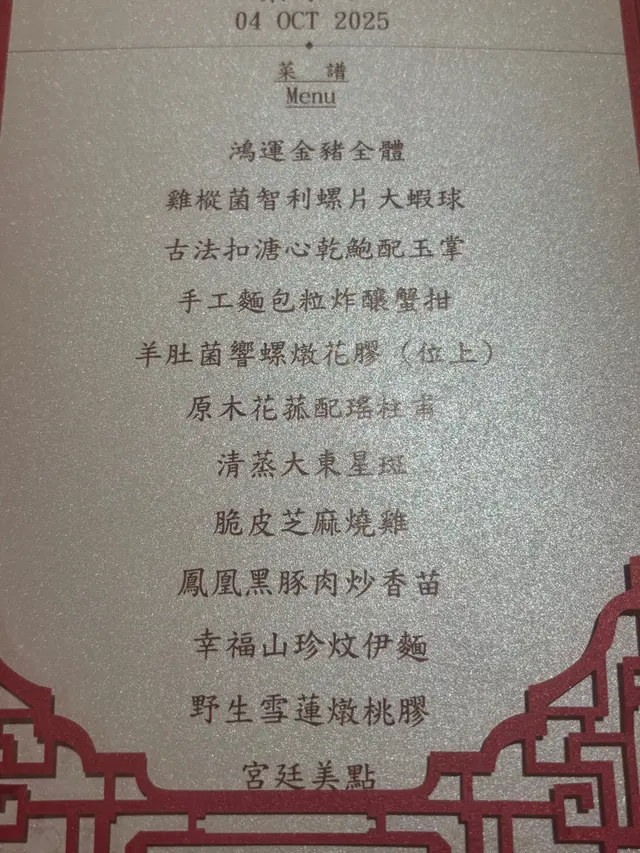 「璟瓏軒」的烤鴨果然名不虛傳!鴨皮酥脆如紙,肉質鮮嫩多汁,搭配手工餅皮與甜麵醬,入口層次豐富。焗釀響螺火候精準,螺肉滑嫩帶鮮甜。最後來碗濃郁西米布甸,美味醇厚,齒頰留香。整體菜品精緻,服務周到,值得一訪再訪!