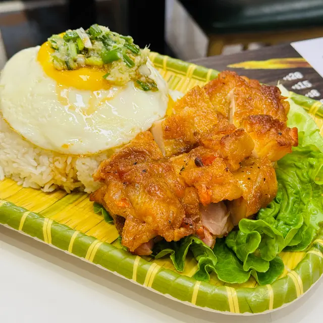 瓊天 - 海南雞飯配肉骨茶今晚嚟到銅鑼灣一間東南亞餐廳,主打海南雞飯,仲有正宗嘅肉骨茶同埋好多泰式嘅菜式例如泰式豬頸肉飯同埋海南雞撈檬。蔥油雞扒飯 $58首先係超抵食之選, $58就可以有大大塊蔥油雞扒另外仲有雙煎嘅太陽蛋,惹味嘅蔥油加上蛋汁再配上白飯,呢款飯仲送埋油菜添。海南雞飯。肉骨茶套餐 $88之後就係超滑嘅海南雞,係經過認證嘅無激素雞,套餐仲包咗肉骨茶添。皇牌燉湯飯套餐 $99估唔到最有驚喜嘅係燉湯,呢個燉湯套餐總共有六款唔同嘅燉湯,可以揀選一款飯類加上燉湯,每款燉湯都係一盅盅,非常足料而且濃味,相信用咗唔少火候,上湯時仲係熱騰騰。泰式豬頸肉、蓮藕餅 $38/$32查看更多