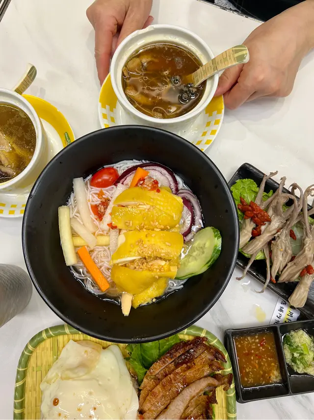 每次來就為了這一口!!🫶🏻價格不貴,量夠多。每次去吃,都會被驚艷到的程度。無骨海南雞,🐔沒有骨頭一口一塊吃起來好滿足!雞肉部分好嫩滑一點都不柴,搭配姜蓉一起吃會更香!🥢雞皮冰冰涼涼有點像果凍口感!雞肉嫩滑、蘸姜蔥汁一起吃口感更豐富🤩我一個人可以吃完一整碟!!超愛💗花雕醉雞,🍚雞油飯,米飯拌著雞油的香味,好香好香好好吃🤤炭燒豬頸肉,表皮煎的金黃焦脆,咬開裡面的豬頸肉的很嫩!沾上甜辣醬一起吃好香啊!查看更多