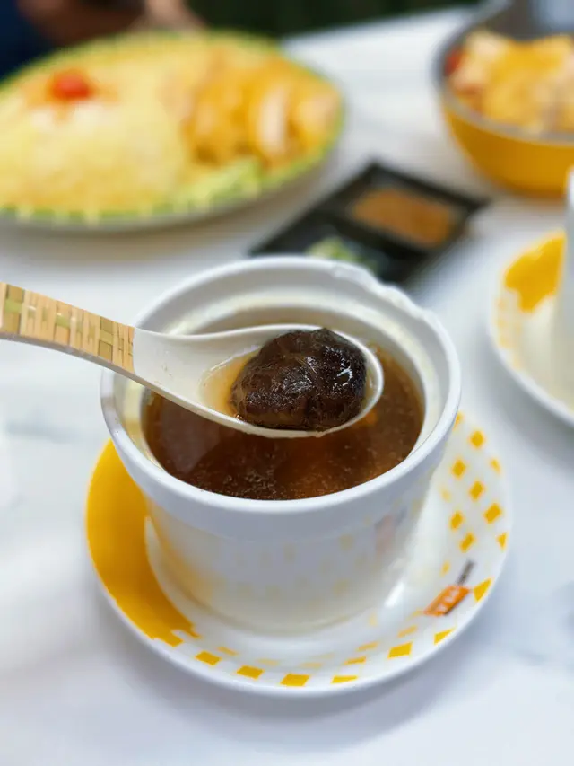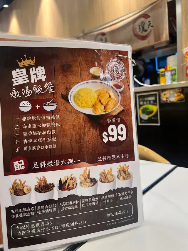 瓊天 位於銅鑼灣軒尼詩道475-481號東南大廈地下E號舖,主打新加坡菜。這家餐廳以其無激素的海南雞和多款養生燉湯而聞名。餐廳環境簡約而現代.乾淨企理,服務熱情有禮,是一個性價比極高的用餐選擇。//花膠螺頭桂圓湯這道湯水不僅滋補養生,還能提供多層次的口感享受。花膠煮得軟糯,富含膠質,入口即化,帶有淡淡的海味。螺頭肉質鮮嫩,略帶嚼勁,與花膠的柔軟形成對比。桂圓則增添了一絲甜味,讓湯水更加甘甜可口//招牌脫骨海南雞飯.油飯去骨雞腿肉,肉質非常軟嫩且多汁。雞皮爽脆不油膩,整體口感非常細膩。油飯:使用雞油和雞湯烹煮,米飯吸收了雞油的香氣,粒粒分明且富有彈性。油飯的味道濃郁但不會過於油膩,搭配雞肉非常完美。//蔥油雞扒煎雙蛋飯煎蛋的蛋白部分煎得微脆,而蛋黃則流心,與米飯混合後,口感更加豐富。雞扒外皮煎得香脆金黃。內裡則保持多汁嫩滑。蔥油的香氣濃郁,與雞扒的味道完美融合,增添了層次感。//黑瑪珈壯腰強筋湯搭配其他中藥材,枸杞、紅棗、黨參等,增強補腎壯腰的效果、黑瑪卡還有助於平衡荷爾蒙、提升免疫力和改善更年期症狀//蓮藕餅 $32外皮酥脆,內部則軟糯多汁。這種對比的口感讓人一口咬下去既有脆感,又能感受到蓮藕的清甜和豬肉的鮮美。//泰式豬頸肉烤製後會變得香脆嫩滑。帶有一點焦香味,增加了口感的層次//泰式鳳爪沙律口感爽脆,咬起來非常有彈性//紅豆冰清爽不膩,甜度適中.紅豆煮得軟爛,帶有自然的甜味,每一口都能吃到紅豆的顆粒感查看更多