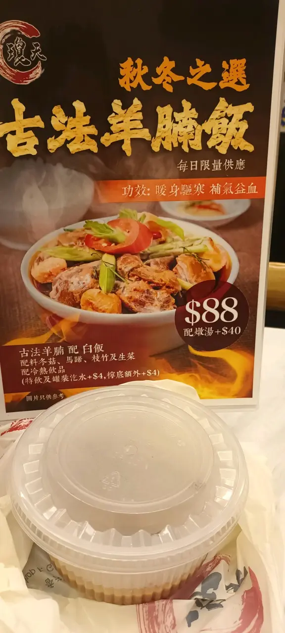 古法羊腩飯不是碟頭飯咁簡單!似足一煲迷你羊腩煲,有香噴噴南乳優質羊腩,枝竹,厚花菇,馬蹄都有兩大粒,仲有唐生菜墊底。仲包杯飲料。太好味了,食完暖笠笠,連汁都打包拎走,一滴都無浪費!查看更多