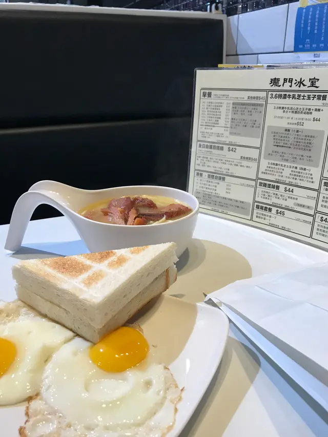 講開尖沙咀食常餐既地方,一定會數到瓏門冰室。位置於金馬倫道,位置幾方便。其實以前各區都曾經開過好多分店,但而家淨返呢間,希望佢仲捱到下。由早上七點到十一點半都有早餐供應,主要分為雙餸麵餐、芝士玉子餐、歐陸滋味(姐係扒餐)同常餐。今次去到叉燒賣曬,最後揀左雪菜肉絲湯米線 配 炒蛋白、芝士腸、奶醬厚多士($39)。炒蛋白仍然係咁大份,有時食下淨蛋白感覺好似健康啲。奶醬多今次烘得燶啲超香口,不過就唔算太多花生醬同煉奶餡。主菜黎講我最鐘意瘦叉,其次係雪菜肉絲,以前既雪菜係好青綠既新鮮菜整既,今次既雪菜就變左普通,好想食返之前嗰種。麵底可以免費轉通粉/意粉/米粉/公仔麵/米線,無論邊種都係偏淋,如果想食硬身啲記得揚聲!瓏門既早餐選擇係好多選擇同好大自由度,主菜、配菜鐘意點轉都得,間中都好enjoy呢種自由!…查看更多