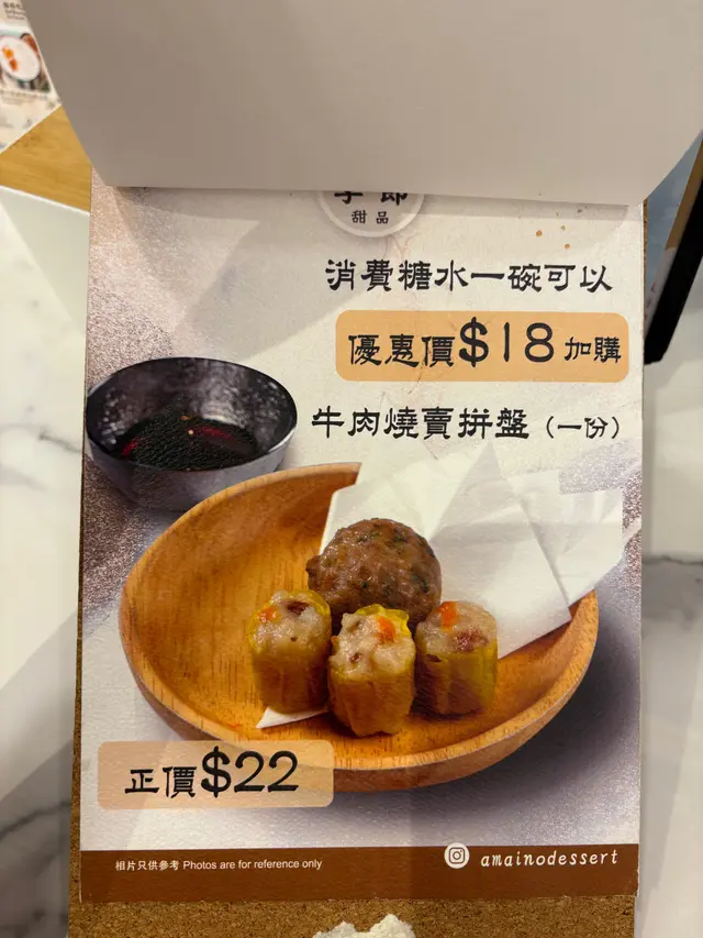 天水圍銀座「甘之季節」糖水舖,甜鹹交織嘅滋味驚喜!今日同朋友嚟到天水圍銀座搵食,行到攰攰地就入咗呢間「甘之季節」糖水舖,真係冇揀錯!一推開門,溫馨嘅木系裝修即刻帶畀我一種好舒服、好放鬆嘅感覺,暖黃色嘅燈光打落嚟,好似返到屋企咁自在。講到重頭戲——甜品,芋圓雪糕楊枝甘露真係令我一試難忘!圓碌碌嘅芋圓煙韌有嚼勁,咬落去軟糯香甜;雪糕奶香濃郁,入口即化;再配上酸酸甜甜、芒果味濃郁嘅楊枝甘露,成個口感層次豐富到好似開Party咁,食落清清爽爽,完全唔會覺得膩,夏天食真係透心涼!杏仁糊加西米都好出色!杏仁糊嘅香氣好醇厚,一聞就知係用足料嘅,綿密細滑嘅質感,每啖都充滿住濃濃嘅杏仁香。加埋粒粒分明、咬落QQ嘅西米,唔單止口感更加豐富,味道上亦都中和咗杏仁糊嘅濃厚,令人忍不住一口接一口,唔夠喉啊!最令我驚喜嘅係,呢間糖水舖居然有燒賣同牛肉球!諗住試一試,點知完全冇令我失望!燒賣皮薄餡靚,蝦肉鮮甜彈牙;牛肉球鬆軟多汁,仲帶住淡淡嘅胡椒香,鹹香可口。甜品配埋點心,甜鹹交替,真係好過癮,呢個搭配真係諗得太妙喇!服務方面,店員態度好親切,有問必答,而且上菜速度都好快。無論你係行到攰想食個糖水充充電,定係約埋朋友嚟傾計聚會,呢間「甘之季節」都好適合!以後一定會再嚟,試埋其他甜品同點心!強烈推薦畀各位鍾意食糖水同點心嘅朋友!…查看更多