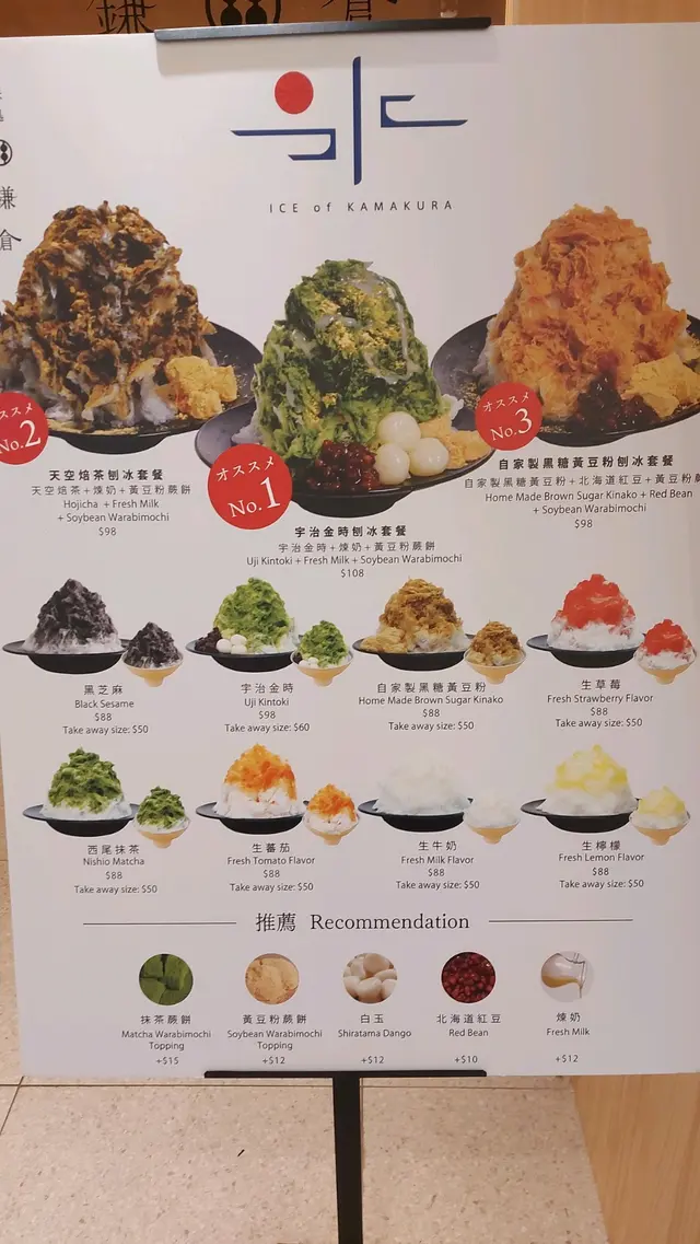 太耐冇去過屯門市中心開咗一間甘味處鎌倉 店舖主打係蕨餅蕨餅刨冰🍧飲品單點蕨餅相信是日本過江龍🥳品質應該有一定嘅保證☺️☺️主打係蕨餅試吓當然要試吓叫咗兩款價錢比較親民甜品原味杯裝蕨餅兩件加雪糕$40蕨餅原味係即係加黃豆粉蕨餅煙靭似日式年糕,整體感覺都幾好味,面層再有焙茶雪糕配搭一齊食感覺幾特別芝麻奶蕨餅$38(底層係芝麻味嘅蕨餅)面層係芝麻奶唔太甜芝麻奶同樣唔太甜(底層芝麻蕨餅有少少似麻糬),都幾特別☺️