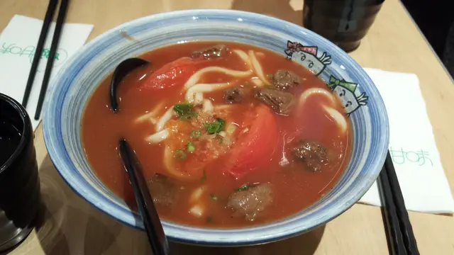 呢日係UA睇完戲出黎好肚餓,於是就近近地食呢到啦.等左一陣就可以入去,SO GD!我叫左個蕃茄牛肉湯烏冬: 蕃茄湯好濃好好喝, 烏冬食落好彈牙而且好煙韌,可惜牛肉熟過頭,唔係好咬到.....小食叫了餃子棒,入面啲雞肉幾好味. 煎得唔會過濃唔錯呢間烏冬真係值得一試,下次唔叫牛肉試下其他先.查看更多