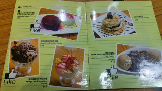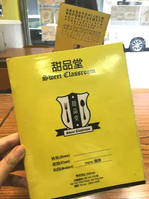 係西營盤食完晚飯,跟住喺附近食甜品,一入到去好似返咗學校咁,張枱係用學校嘅書枱,又用黑板寫上甜品,menu 都設計成手冊咁,幾得意.我哋一行四人每人叫咗五款share嚟食,每樣價錢都係$45. 餐牌小學雞,啲甜品更加小學雞我自己本身好鍾意食甜野,但啲質素真係差到我都唔想食,浪費我嘅quota,海鹽pancake無鹽味,西多士係軟林林,綠茶蛋糕係咸嘅,朱古力牛角包有蘑菇味,另外果樣我都完全食唔出係咩黎食,份量又小,但我哋四個人都唔想食食唔晒查看更多