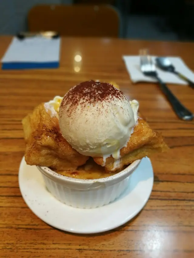 今次同個fd去咗西環搵食。經過依間出面以為補習社(因為英文係classroom。枱櫈都係課室嗰啲)。內裏原來甜品店嘅食店。就吸引咗入去重拾返學感覺。餐牌係校簿同黑板。有少少懷念返學日子。叫咗個西多雪糕面包布丁。一個甜食品到三樣嘢。滿足。西多士好似都新鮮製作熱辣辣。加埋雪糕溶溶吓咁食一凍一熱。雪糕取代了糖漿令西多也有甜甜的效果。面包布丁也做得不錯。幾滑同口感好rich。味道都不錯紫薯心太軟。唔係度度有。個色勁靚。食落好有薯味。好足料。啲流心充滿紫薯蓉。配雪糕食又係一流總結係一間有心思嘅甜品店(不論裝修同甜品)。甜品款式都幾多。味道賣相都不錯。查看更多