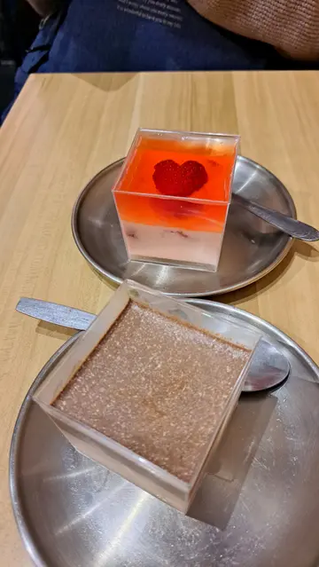 區內開業多年嘅街坊小店,非常有人情味,入到去大家會認得,噓寒問暖,睦鄰關係一流,根本唔需要我幫佢哋push生意。屋企人周不時捧場食甜品,尤其是係果凍,因口感非常「彈」,令屋企兩個啫喱控為之着迷,每次我都會起碼買四份(共16件)先食得夠皮,每份$28。佢哋啫喱多數會有檸檬茶味、洛神花味,今日有期間限「茉莉綠茶味」,呢個係我嘅至愛;淡淡嘅茶甘香,唔係太甜,食完都唔內疚。佢另外仲有簡單的午餐晚餐,係比較健康嘅意粉或者飯餐,我未食過,遲啲搵機會試吓。