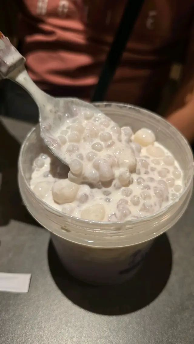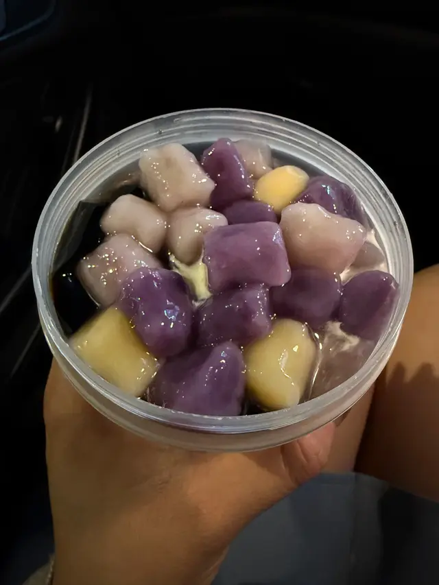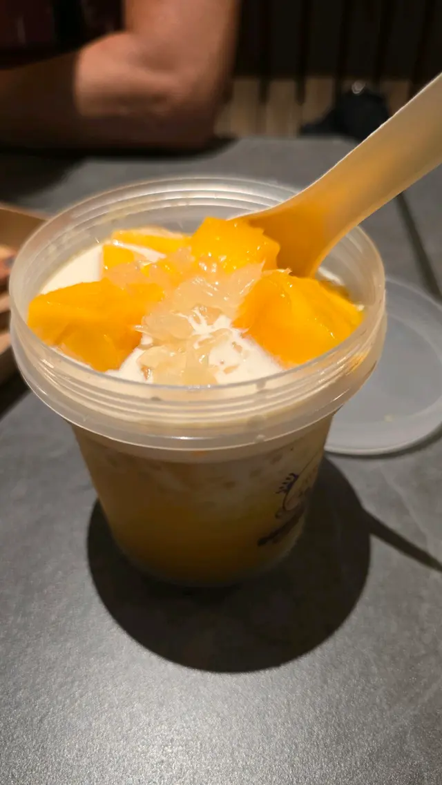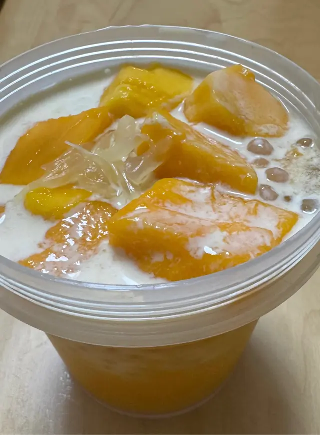 去婆婆家晚飯後有口福,表弟從深水埗外賣甜品回來,是由甜姨姨研究所買的。厚芋泥山野桃膠小丸子,透明的外賣碗就見到內裡有著厚厚的芋泥,手工紫薯芋泥又香又細滑,甜度適中。桃膠發得夠透,好柔軟,配上煙韌的小丸子,口感豐富。配以椰汁底,令整碗甜品更香。D24榴槤芒西椰椰,有榴槤、芒果、小丸子配椰汁西米露,一打開蓋,榴槤香撲鼻。榴槤肉不少,味道香甜濃郁,幾乎蓋過芒果的香甜。由於自己不愛吃西米露,所以覺得兩碗甜品,是芋泥那款出色得多!…查看更多