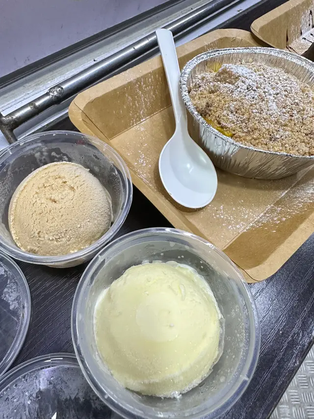 元朗 Sugar Mama | 隱世心太軟專門店 WanisLeung等級42024-03-14873 瀏覽 關注 📍 Sugar Mama (元朗) @sugarmamayl 放工後的我一個人在街上逛,忽然想食甜品,行下行下係一條巷入面發現到呢間餐廳,隱約見到最出名就係心太軟,所以我特登上前試一試。🧡開心果心太軟(配芒果巴菲)即叫即整既心太軟,是老婆最愛的開心果口味,但其迷人奧妙之處,盡在一刀切下去時,裏面的開心果漿流出,有如火山熔岩般,慢慢流動。芒果芭菲分開三層,第一層芒果冰雪,中間係椰漿,最尾係芒果肉,一啖巴菲三種享受。🧡蘋果金寶(配雲呢拿雪糕)蘋果金寶係一款傳統英式甜品,而且外脆內軟兼暖笠笠,再配上雲呢拿雪糕,一凍一熱,冰火交融,非常好味。P.S. 我見餐廳有出售急凍心太軟,可以在家中招呼親朋戚友,或者自己享用,買嘅時候亦都有埋食譜,簡單又易整。仲有餐廳入邊仲有其他小食,即叫即整, 10分鬆脆。…查看更多以上食評乃用戶個人意見 , 並不代表OpenRice之觀點。讚好分享元朗 Sugar Mama | 隱世心太軟專門店 甜心良品 https://s.openrice.com/QrbT0cgvH00檢舉 張貼 評分4味道4環境4服務4衛生4抵食用餐途徑堂食