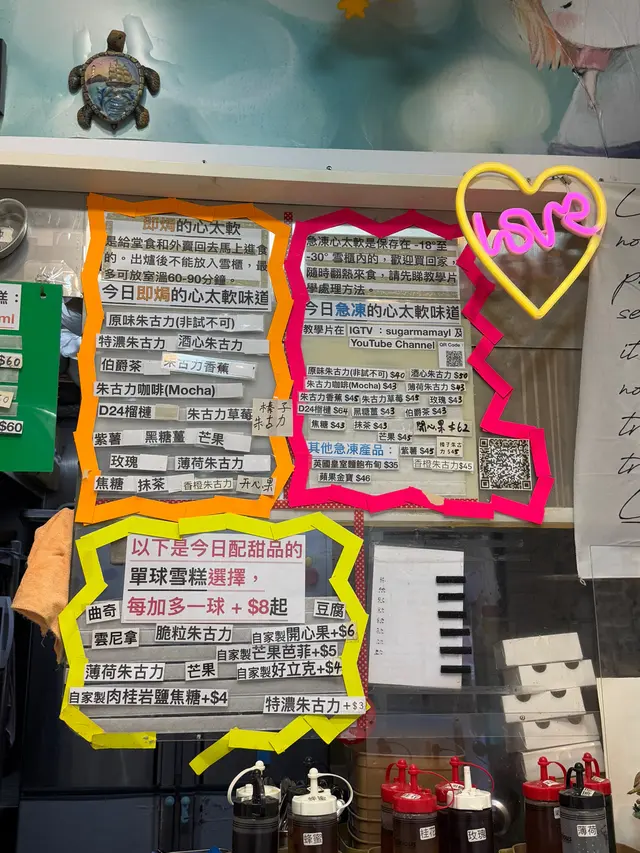 屯門虹橋附近匯集咗好多特色小店,今次選擇咗其中一間甜品舖,專攻心太軟。小店只有三張枱,慶幸當日無需等位。店主熱情友善,店內裝飾以海為主,增添咗趣味同溫馨嘅感覺,需注意一點,店舖只接受現金同八達通支付,而且現金找續係自助嘅,令小店充斥着信任與人情味心太軟每一款心太軟可配搭一球雪糕,口味選擇豐富,包括曲奇、朱古力、雲呢拿、豆腐等,熱的心太軟配上冰凍雪糕,一冷一熱的感覺,帶嚟豐富嘅口感特濃朱古力心太軟心太軟外層鬆軟,內裏濃郁嘅朱古力漿瞬間流出,每一啖充滿濃厚嘅朱古力味開心果心太軟心太軟內含有開心果漿及開心果碎粒,每一啖都充滿開心果味,食完心情亦都好開心查看更多