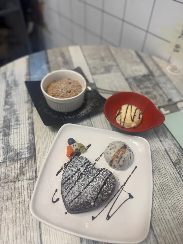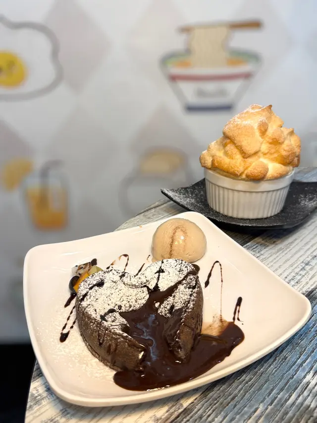 💫招牌原味朱古力心太軟一切開啲朱古力漿就流晒出嚟🤩外皮薄👍🏻 食落去好鬆軟~朱古力唔會太甜太膩😽 好smooth好好食🤤同埋一食就知唔係嗰啲好假好多香精嘅朱古力🥹配埋雪糕冰火二重奏多咗種口感🤣真係一定要試💯💯-💫綠茶心太軟呢款我就唔係話特別推介🤔因為食咗原味先所以相對上呢款打唔過🤣同埋呢款比較甜😣 不過都係好食嘅👍🏻 綠茶味都特出🫶🏻 都係外皮薄~-💫招牌純蛋白疏乎厘呢款我就覺得麻麻地😢賣相望落去好吸引!所以可能我期望高咗🥹再加上前面兩款心太軟都好食🤣空氣感十足~ 外脆內軟😽 入口即融🫶🏻 但係味道上就差啲😢外皮淨係食到啲糖粉嘅甜😣 入面蛋白反而冇咩味加埋一齊好似都唔係好夾咁🤔最後我係要mix埋雪糕先覺得ok😭這款我不太喜歡呢😔-環境比較細 得2-3張枱 同埋都比較逼😢衛生係ok乾淨嘅不過個空間感同格局可能會令你覺得麻麻地咁🤔老闆好好人會提埋你點樣食係最好嘅~而且又平cp值都ok㗎🤣-整體評價:3.6🌟 (但啲心太軟可以值4.3🌟!)查看更多