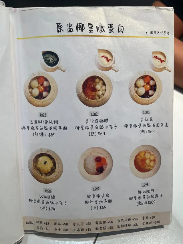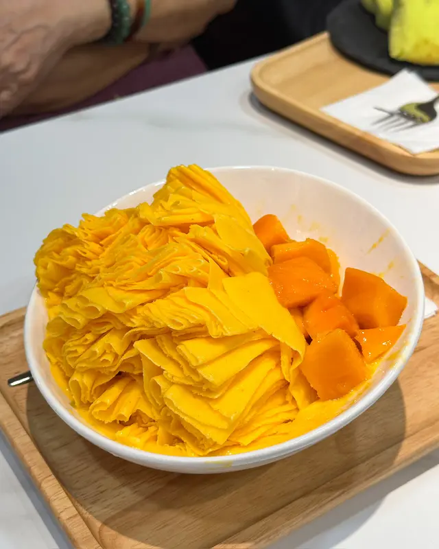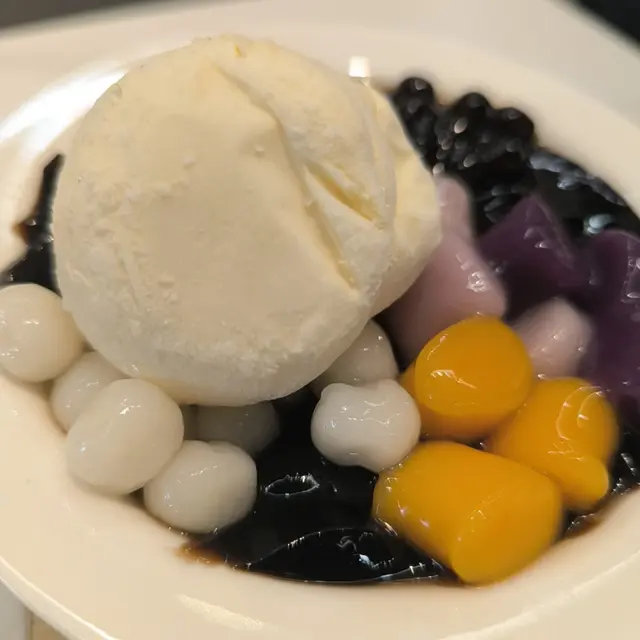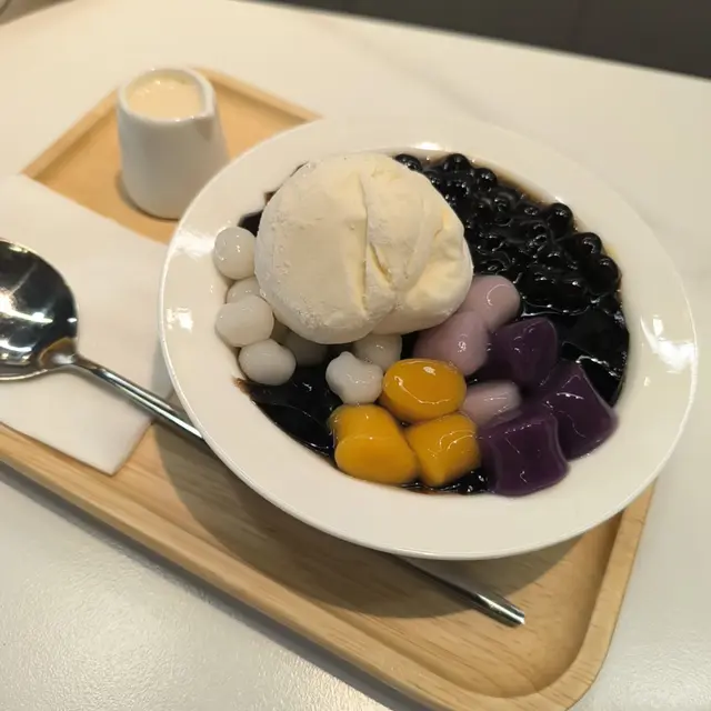今次同朋友去試下呢間人氣甜品店,無論係顏值定味道都幾高質。🌖可愛QQ雪見·士多啤梨 $45呢個造型真係超治癒,表情可愛,上面粒鮮紅欲滴、晶瑩飽滿嘅大草莓好搶眼。外層麻糬薄薄一層,質感軟糯煙韌,好似雪糕糯米糍嘅輕盈外皮。咬開仲有軟滑香甜嘅爆漿內餡,甜度恰到好處,唔會膩。最重要係顏值滿分,打卡必點!🌖焦糖巴斯克開心果芝士蛋糕配鮮果 $68面層焦糖厚厚一層,帶微微焦香,如果再薄脆少少會更完美。芝士蛋糕入口綿密幼滑,口感輕盈唔會太heavy,仲滲出淡淡嘅開心果堅果香,味道清新不膩,伴隨新鮮水果一齊食更加平衡。🌖榴槤雪糕窩夫 (升級榴槤雪糕) $66雪糕入口有濃郁榴槤味,唔會假假地;雪糕以外仲有香濃嘅榴槤蓉,滿足曬榴槤控。窩夫即烤即上,熱辣辣外脆內軟,配埋冰涼雪糕同香脆粟米片一齊食,口感層次豐富又對比強烈,超級過癮。🌖鮮奶桃膠椰皇燉蛋白配蓮子 $69椰皇燉蛋白一定要趁熱食!滿滿嘅椰子香同滑捋捋嘅蛋白,入口細膩柔順,再加上養生爽滑嘅桃膠同清甜綿密嘅蓮子,最後淋上香濃鮮奶,口感更圓潤。整體味道清香滋潤,真係美味與健康並重。-…查看更多