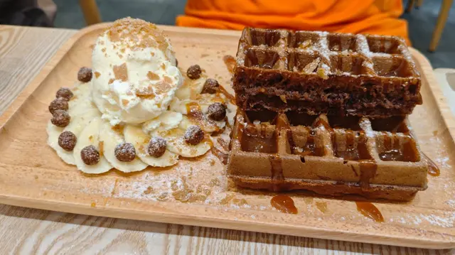 花生醬煉奶香蕉朱古力窩夫配雪糕