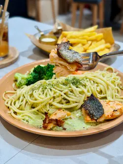 甜牙牙是環境輕鬆舒適,適合朋友小聚或甜品控打卡。一入座便感受到溫暖的燈光與簡約裝潢,讓人放鬆心情。青醬三文魚麵食青醬意粉碎扒牛油味太重,香醬味濃郁,但牛油味不會過於油膩,三文魚外皮脆炸,增添口感,肉質鮮嫩,富有三文魚味道,加上少量蔬菜配搭,扁意粉彈牙。蒜油小魷魚小魷魚用快炒,軟腍惹味,彈口,微微的辣,加上少少蒜味。黑松露薯條薯條新鮮脆炸,外脆內熱,遇上黑松露醬,十分可口。青檸梳打青檸鮮味很濃。冬瓜荷葉減脂茶冬瓜茶甜味不重,真的不會怕肥。帶有少量玄米茶的味道,口感新奇,有趣。椰汁燉桃膠(凍)用了十足,充滿桃膠及雪耳,入口椰汁味香濃順滑,椰汁味在口內迴盪,絕對係抵食之選。抺茶心太軟有多款雪糕可以配搭,即叫即焗,心太軟抹茶味苦中帶甜,心的朱古力抺茶,厚實,是宇治金時味道。外脆內軟及甜味是剛剛好,必叫!…Read More