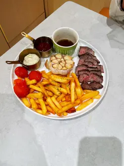 約左朋友仔去旺角行街街,好肚餓搵下有咩食,以為呢間甜牙牙淨係食甜品,原來仲有西餐食,唔錯喎!超值牛小排套餐,前菜有蒜油小魷魚,微辣,自家醬汁好惹味,魷魚彈牙新鮮。牛小排150g,牛小排只做5成熟,是烤不是煎,最後rest 5分鐘,淨係輕度調味,食到牛既原鮮味,配上牛肉汁。配菜有薯條和烤蒜,點個松露沙律醬好正。前菜有堅果甜醋沙律,夠新鮮。白汁雞胸意大利麵,好健康既雞胸但係有味入味的,白汁帶黑椒調味,上面有芝士片片。Tiramisu 窩夫,擺盤好靚,窩夫外脆內軟,Tiramisu夠cream又濕潤,仲有一球雪糕。芒果酸奶乳酪,高腳小杯好可愛,係希臘乳酪,上面有芒果和脆脆低脂又好味。紅棗枸杞玫瑰茶,小黃菊水果茶,花茶好足料,冇糖都好好飲,按個人喜好可以加甜。…Read More