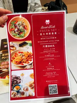 放工後來旺角家樂坊,行經呢間重新裝潢甜品店,由小食到晚餐樣樣有 仲要免加一收費,餐廳有一排小座位,有私人空間好浪漫,岩哂情侶去,可以慢慢飲杯野,傾下計!套餐-牛小排牛小排,牛味好香濃,脂肪不多,仲可以見到有小小紅紅地,肉味濃郁,肉質鬆軟! 口感軟腍!時間控制得岩岩好!伴旁嘅有薯條作拌菜,份量超多!烤雞翼幾香口,亦保留了肉汁。Tiramisu拿破侖(朱古力雪糕)份量大TIRAMISU 鬆餅,鬆餅超鬆軟,咖啡味濃,不太甜。呢款有多種口感,價格性價比高,十分滿意。意大面套餐腩肉卡邦尼面卡邦尼意粉同其他餐廳嘅出品更重忌廉/芝士嗰種,食落又唔系糸膩。意粉質感富嚼勁,不過最出色嘅部份係薄切腩肉,鹹香十足之餘,更有煙燻香氣。蒜油小魷魚切成碎粒小魷魚,味道有點辣,幾開胃。紅棗枸杞玫瑰茶可樂…Read More