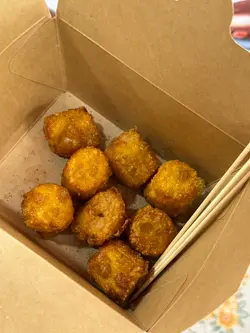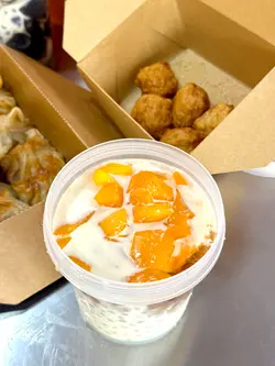大家支持下有水準嘅小店啦!!😄推介呢度嘅餃子、芒果系列飲品糖水,仲有芋泥,全部由老闆娘用心製作,足料好味又唔貴,等外賣期間都見唔少街坊嚟買糖水同小食,識貨😆~栗米煎餃煎餃餡有韭菜/粟米兩款選擇,我揀咗粟米。個皮煎得夠脆,唔會稔晒,咬落有脆卜卜嘅聲,而且唔會煎到燶晒。粟米爽甜,肉都扎實,餃子皮唔算太簿亦唔太厚,啱啱好,食落冇乜粉感。一盒10隻脹卜卜爆餡夠飽肚,正餐食一盒當食飯絕對冇問題。炸燒賣炸得香脆,夠熱,影完相食嗰時都仲係暖暖地,加啲椒鹽百吃不厭😂多芒小丸子好大嘅一兜👍真係幾多芒果🥭🤩小丸子煙韌有咬口綠豆沙湯圓想清熱叫咗綠豆沙,唔錯喎唔係水汪汪得個甜字嗰種湯圓大大粒,皮夠薄,一咬入面嘅芝麻餡即刻漏出嚟,芝麻餡亦夠香。…查看更多