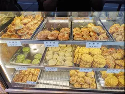 用餐時間 :10月2號旁晚準備走人去街市附近等巴士,行過有間麵包鋪,又走去八掛下買2隻包當晚食見到寫住益街坊10蚊條卷蛋又真係好過份地平有豬仔包,焗蛋糕,曲奇,酥餅等等~蛋撻酥皮同曲奇都係賣緊$3.5一隻!酥皮個層數唔算多,皮都比較厚身,但係3個半無咩好投訴,蛋漿都夠甜香老婆餅賣相唔靚,但$3個,收貨,仲有新潮紅豆抹茶燒餅,叉燒酥$4,豆沙酥等等都係3蚊個叉燒包$5一個,吞拿魚包$5腸仔包都係另外仲有無餡包,例如提子條,芝士條,芝麻卷.餐包等等 平到去$2.5-$3一個好誇張~肉鬆包$5,紫薯包$5-2個,大部份都係$5就落樓,窮人救星呀!最貴個D都係$10一個,大包黎,芝士火腿都係$5一個~大大盒瑞士卷蛋都係10蚊條,有原味,朱古力,綠茶!總評:平價到笑,買幾多個都唔嫌貴~味道不錯
