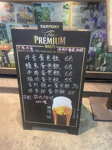 話說有日我妹好想食蛋包飯,佢話元朗教育路有間好好味的蛋包飯想試下。就帶左我係呢間生原創蛋包飯店。餐廳環境真係好特別,滿滿的日式風格掛滿左好多日系懷舊風的飾物,包括留聲機,黑膠碟唱片等等。最有特色就係黏滿有表情的雞蛋圖畫,真係好得意。餐單有好多唔同顏色的蛋包飯選擇,餐牌中英日文都有指示,如果唔明都有張圖案俾客人睇。我地揀左澳洲和牛蛋包飯,仲加18元指定流心蛋,另外揀左三文魚🍣煙肉🥓紅菜頭蛋包飯。蛋包飯仲可以㨂三種汁(茄汁、咖哩汁同忌廉芝士白汁)侍應都幾好,佢會即下幫你切開個蛋包飯同埋落埋香料,個流心蛋切開個下真係好靚好吸引,啲蛋仲滑嘟嘟,裡面仲有好多蛋汁。紅菜頭個蛋包飯都幾特別,成個蛋紅卜卜都幾吸引眼球👀流心蛋澳洲和牛包飯啲飯都幾多牛肉粒,味道都唔錯,調味岩岩好,啲飯粒都分明。三文魚🍣煙肉🥓紅菜頭蛋包飯都好多三文魚粒,個飯都幾香,不過有少少可惜個點飯的調味有少少偏鹹,食完都有啲口渴要飲多杯水。侍應都幾好會得閒過黎添返水杯啲水。總體而言,餐廳整體環境都唔錯,音樂都好Chill,食物整體質素都Ok。有機會再黎👍🏻
