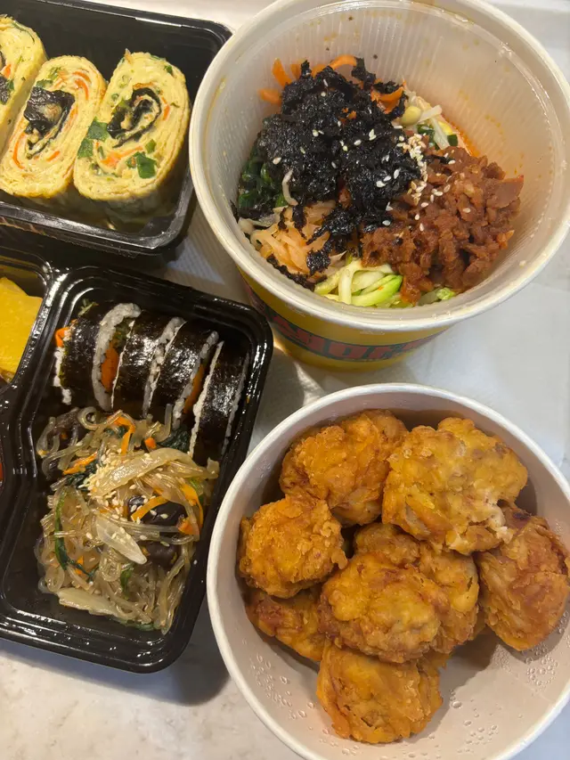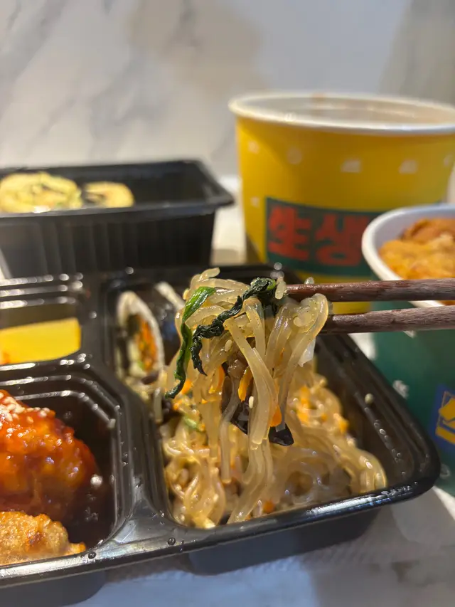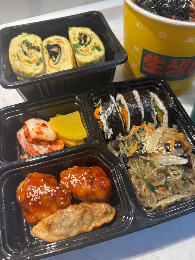 呢日去開元朗,在市中心路過依間專賣韓國食品店嘅生生市場,款式種類好多,有熟食亦有生醬油蟹,天氣咁熱想食啲開胃野嘅飯卷、炸雞、韓式炒粉絲等,即刻入店內揀番啲韓式食品返屋企先 ~韓式雜菜粉絲午餐盒 $80午餐盒裡面有多款食材,韓式炒粉絲,粉絲彈牙爽口,配料豐富,帶香甜好美味,微辣爽口嘅泡菜,蓮藕醬汁入味,豆芽及菠菜帶清新麻油香,適合拌飯。配合蔬菜味噌湯,湯味清甜,洋葱鮮菇爽口,不錯嘅午餐盒。 蜜糖牛油無骨炸雞 $58去咗骨嘅炸雞,方便易食,韓國雞肉味香,質地嫩滑唔乾身,而且有肉汁,炸到外脆內軟,而依度嘅炸雞有獨門技巧製法,炸出嚟唔油膩又鮮嫩酥脆嘅雞件,沾滿香甜嘅蜜糖牛油,口感層次更豐富更惹味。甜辣無骨炸雞 $58炸至金黃嘅無骨雞塊,外脆內軟,好香口,雞肉鮮嫩,入面有肉汁,食落唔油膩,外層沾滿甜辣醬汁,微辣香甜,越食越滋味。烤牛肉紫菜飯捲 $53餡料豐富嘅牛肉紫菜飯捲,牛肉香濃,肉質鮮嫩,配搭埋其他食材有紫菜、青瓜、蛋、紅蘿蔔、脆瓜、生菜等,喜歡好多材料,清爽鮮甜,食出唔同味道,多種層次,好美味。…查看更多