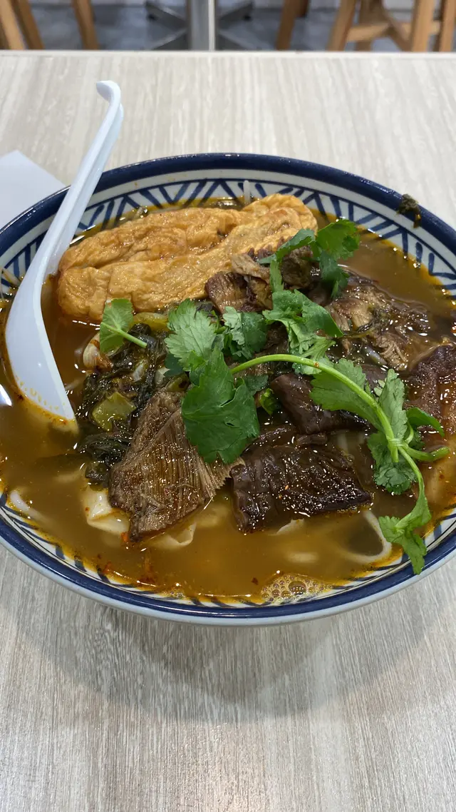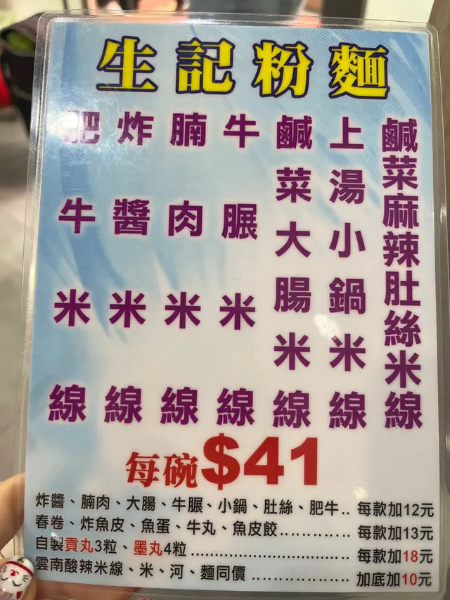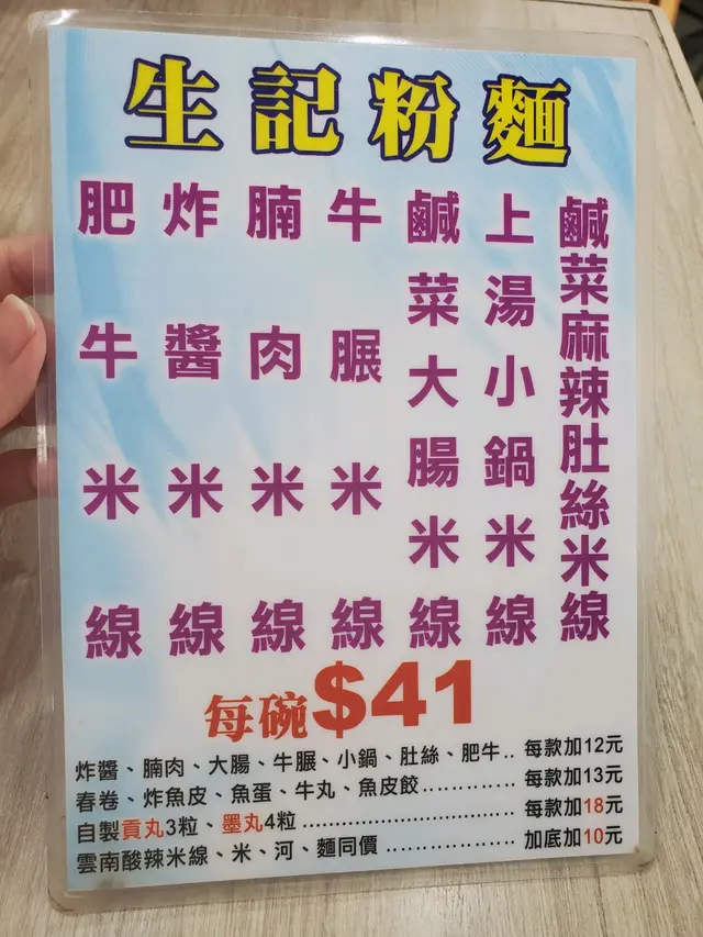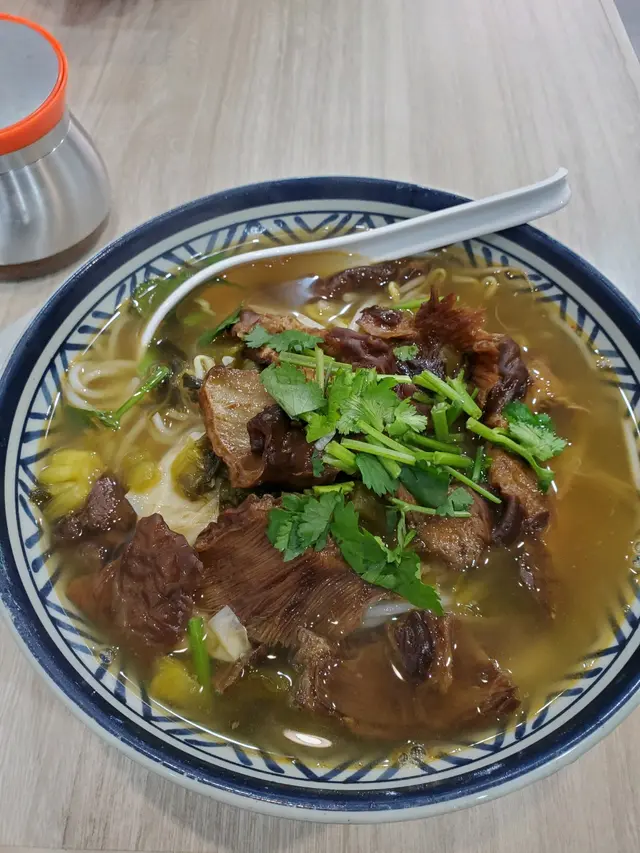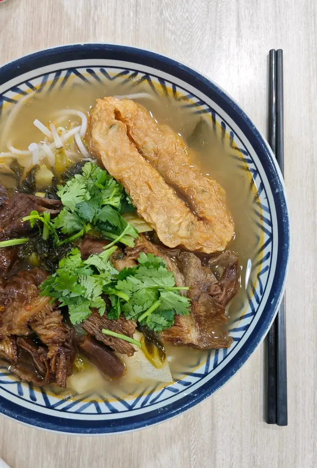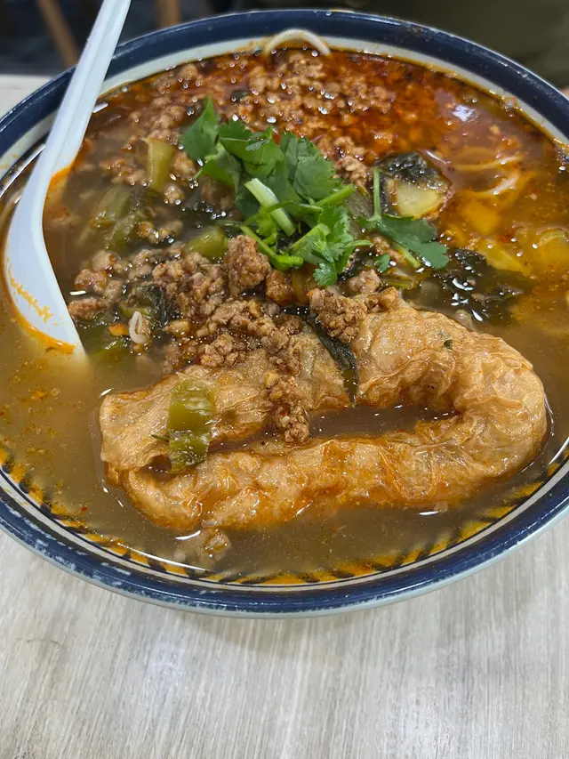 係大河道新開左間粉面店,店舖小小,但算乾淨,一般都係1-2個人去食。我去既時候係兩點幾,即使無下午茶餐,都有唔少人食緊👍🏻我叫左碗鹹菜大腸米線,加左出名既魚肉春卷,total $56. 店員話本身碗面都有少少辣,所以我無加辣,但如果想食辣,建議加辣,因為本身個少少辣,真係好少。不過湯底夠酸,我諗鹹酸菜功不可沒,豬大腸乾淨入味,魚肉春卷都唔錯,overall 成碗野幾好食。女仔食份量夠,男士可能爭少少。下次經過會再試食其他餸同佢既辣