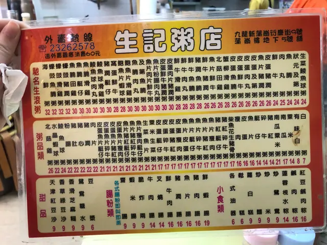 新蒲崗呢間位於衍慶街既生記粥店,店舖不大,但吸引了好多街坊嚟食碗粥做早餐。早餐時段到店,差唔多坐滿食客,搵個位坐低睇下個餐牌,粥既種類都十分之多既選擇,最後決定點咗碗魚片艇仔粥同埋一碟牛肉腸。碗粥既份量適中,但好多粥料,粥底好夠味,唔錯,牛肉腸個皮十分之滑,份量唔多,但牛肉餡就冇乜味,要蘸豉油食。[米饭]口味:🥚🥚🥚🥚[薄荷]环境:🥚🥚🥚[服务铃]服务:🥚🥚🥚🥚[糖果]性价比:🥚🥚🥚🥚…查看更多