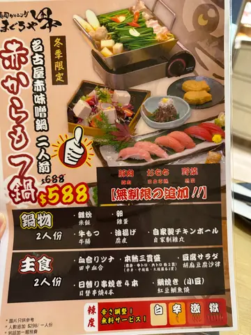 天氣凍又想食日本嘢又想暖笠笠,宜家田中寿司推出嘅名古屋赤味噌鍋套餐就啱晒☺️ 份量充足,有齊前菜、壽司、鍋物、甜品,而且鍋物嘅豚肉,日本年糕,野菜有得無限追加,一定夠飽😌名古屋赤味噌鍋 二人前|$𝟓𝟖𝟖✦ 主食:田中血合本鮪三貫盛(赤身・中拖羅・大拖羅各𝟐件)胡麻豆腐沙律日替串燒𝟒本紅豆鯛魚燒係等緊鍋物熱嘅時候,首先為我地送上田中血合,係魚骨周圍側線皮下嘅肉,我都係第一次就咁食!成個套餐最期待當然係本鮪三貫盛,有齊肥中瘦😋 ✦ 鍋物:牛腸・腐皮・自家制雞丸・米飯・雞蛋・芝士(無限追加:豚肉、日本年糕、野菜)首先食咗配菜牛腸、腐皮、自家制雞丸先,再加入可以無限追加嘅豚肉、日本年糕、野菜😙 食到咁上下,將米飯倒入鍋中,再加入雞蛋同芝士拌勻,超邪惡🫣 赤味噌鍋湯底相當濃郁~額外追加:✦ 拖羅鉄火卷|$𝟓𝟖✦ 和牛|$𝟒𝟖✦ 鰈魚裙邊|$𝟐𝟐💬 𝐎𝐯𝐞𝐫𝐚𝐥𝐥:環境幾闊落舒服~ 二人前啱晒懶人樣樣有啲唔洗諗🤪 二人餐份量足夠,食埋湯飯都好飽!胃食可以再追加佢日常menu嘅壽司,都幾多選擇😉…查看更多